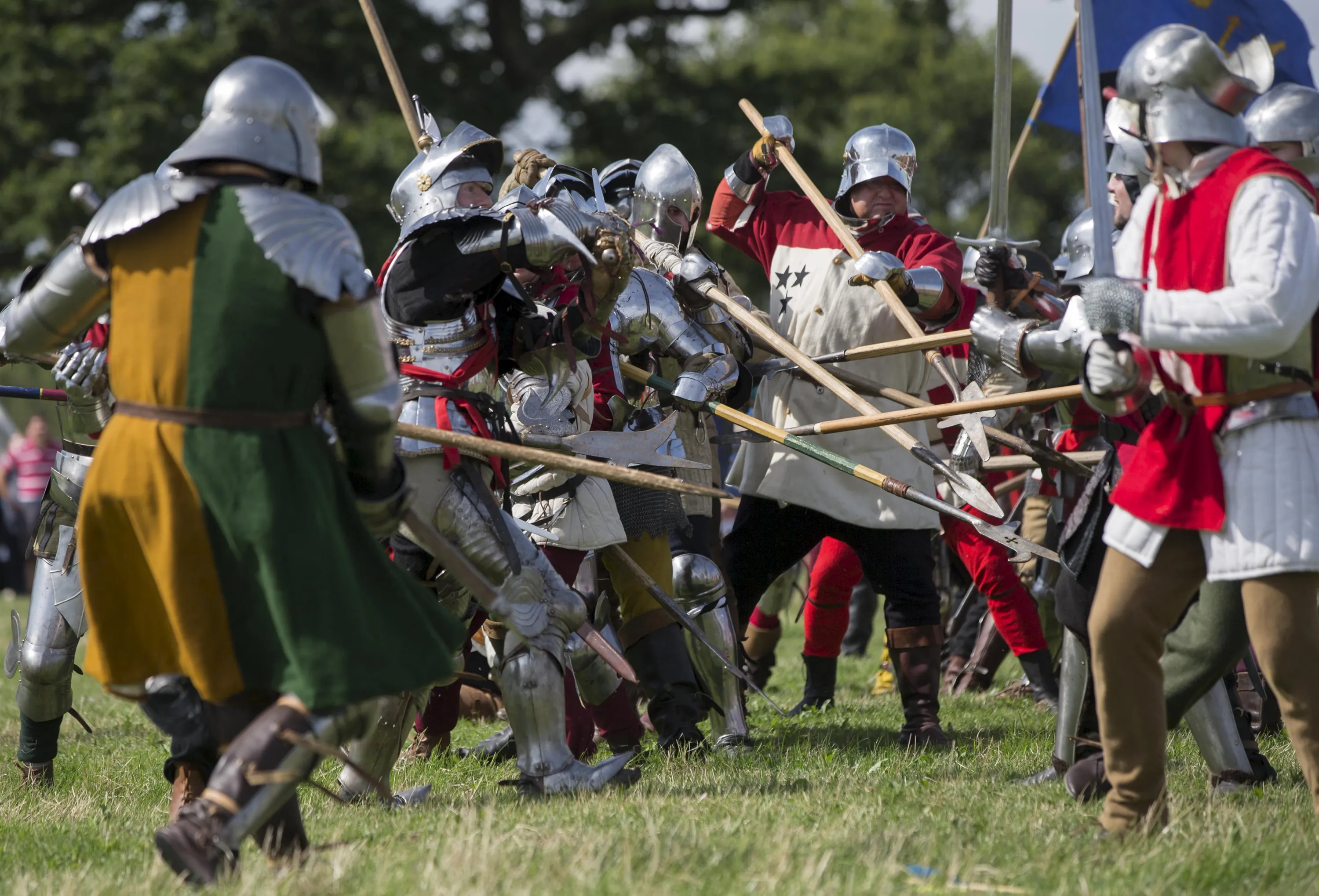 Historical re-enactors re-create the Battle of Tewkesbury as part of an anniversary event for the Battle of Bosworth near Market Bosworth in central Britain August 22, 2015. (Photo by Neil Hall/Reuters)