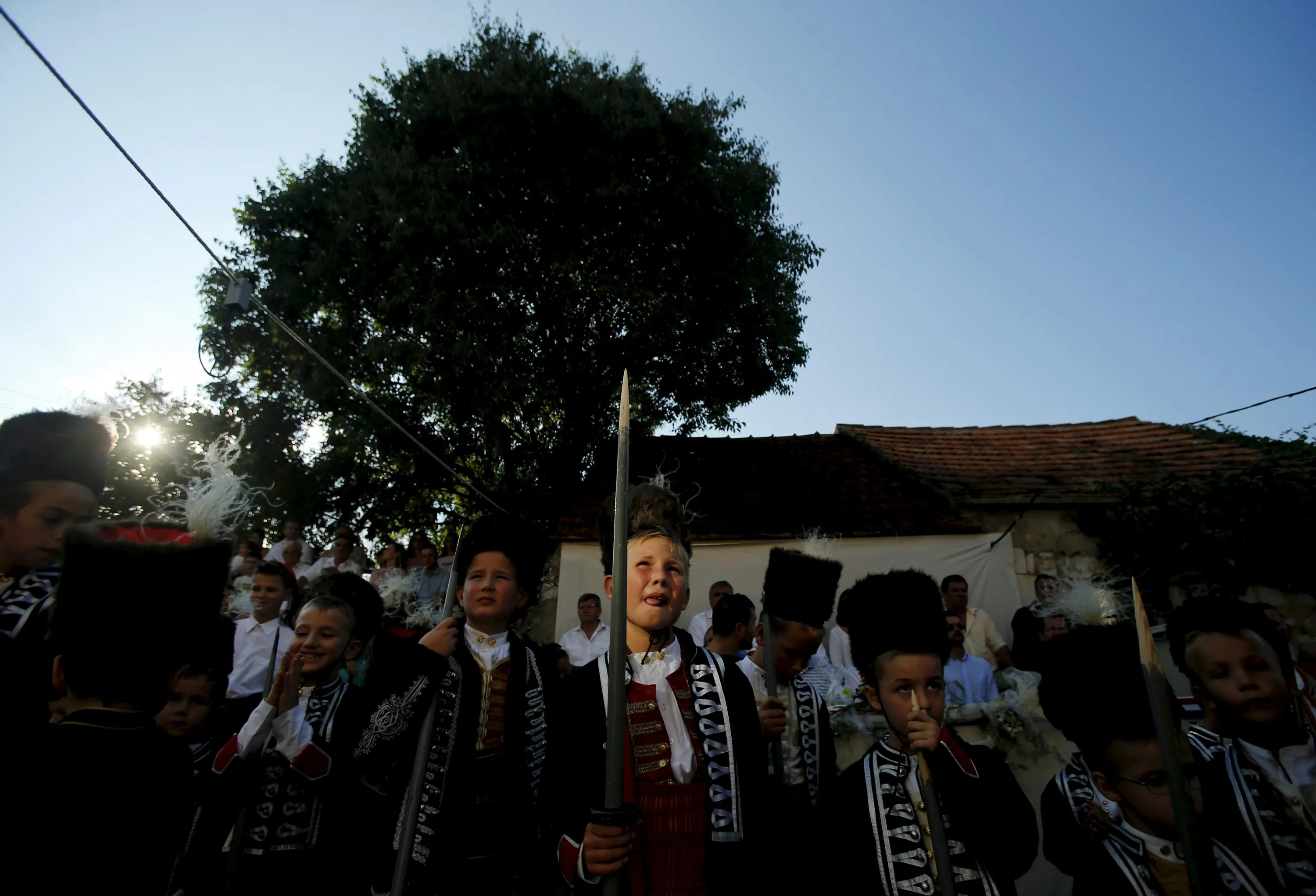 Child Alkars are seen before the Children's Alka competition in Vuckovici village, Croatia, August 23, 2015. (Photo by Antonio Bronic/Reuters)