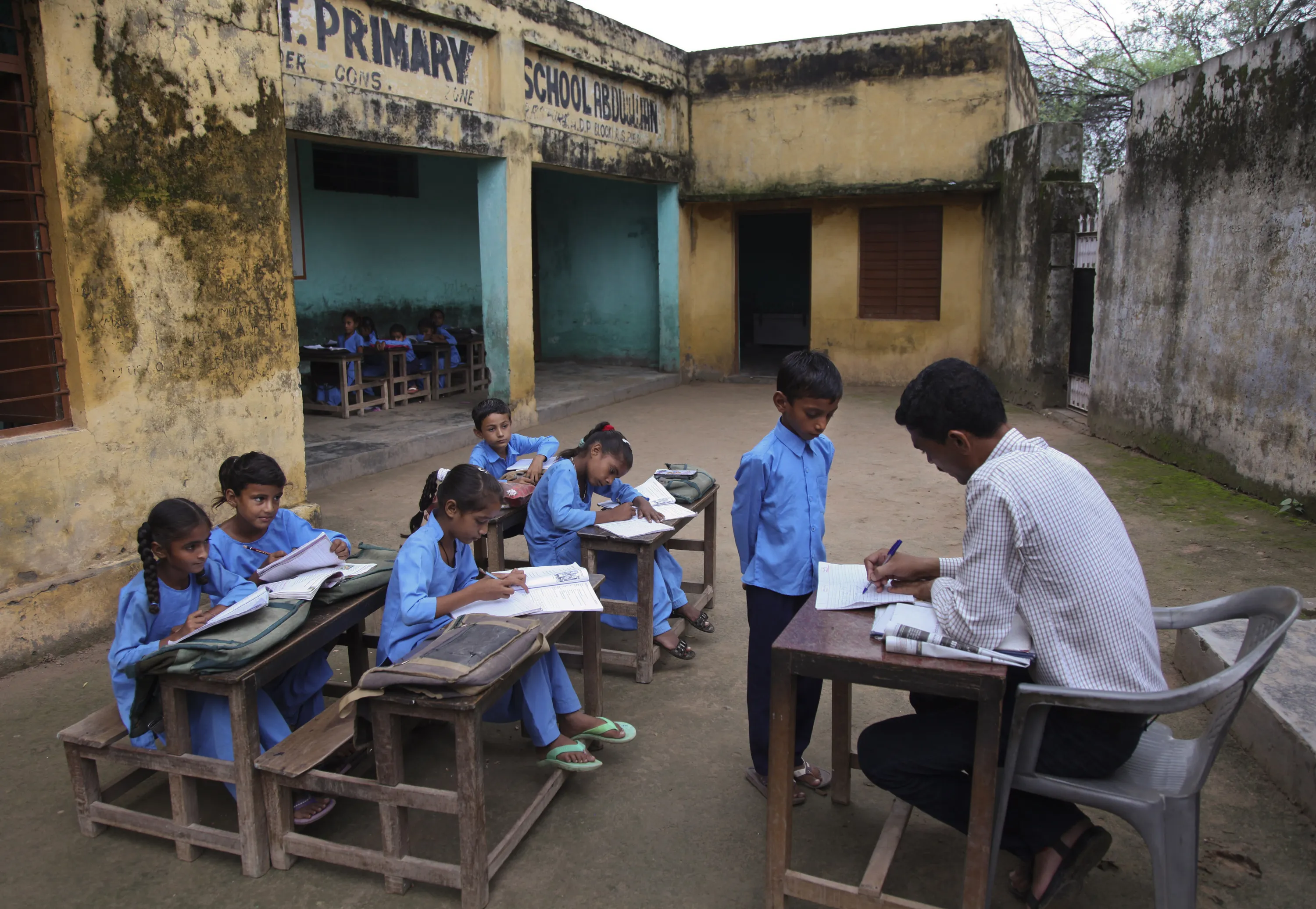 In this Friday August 21, 2015 photo, Indian children attend a school which near the India Pakistan international border in Ranbir Singh Pura, 36 kilometers (23 miles) from Jammu, India. (Photo by Channi Anand/AP Photo)