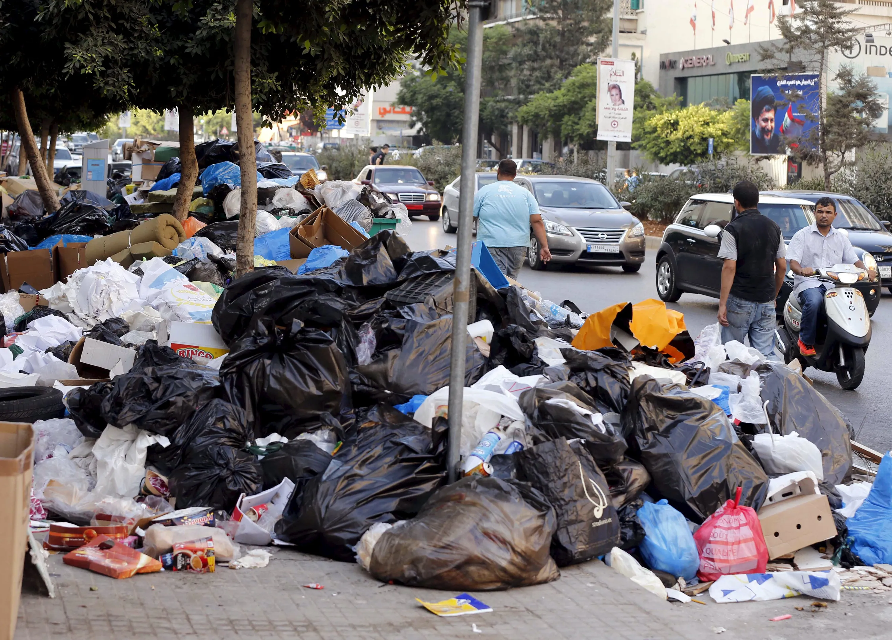 A man on a scooter, pedestrians and cars pass by garbage piled up along a street in Beirut, Lebanon August 26, 2015. The powerful Shi'ite party Hezbollah and its Christian allies walked out of an emergency Lebanese cabinet meeting on Tuesday in protest at a proposed solution to a garbage disposal crisis that has ignited violent protests in Beirut. Public anger that has come to a head over the trash crisis turned violent at the weekend, with scores of protesters and security forces injured. (Photo by Mohamed Azakir/Reuters)