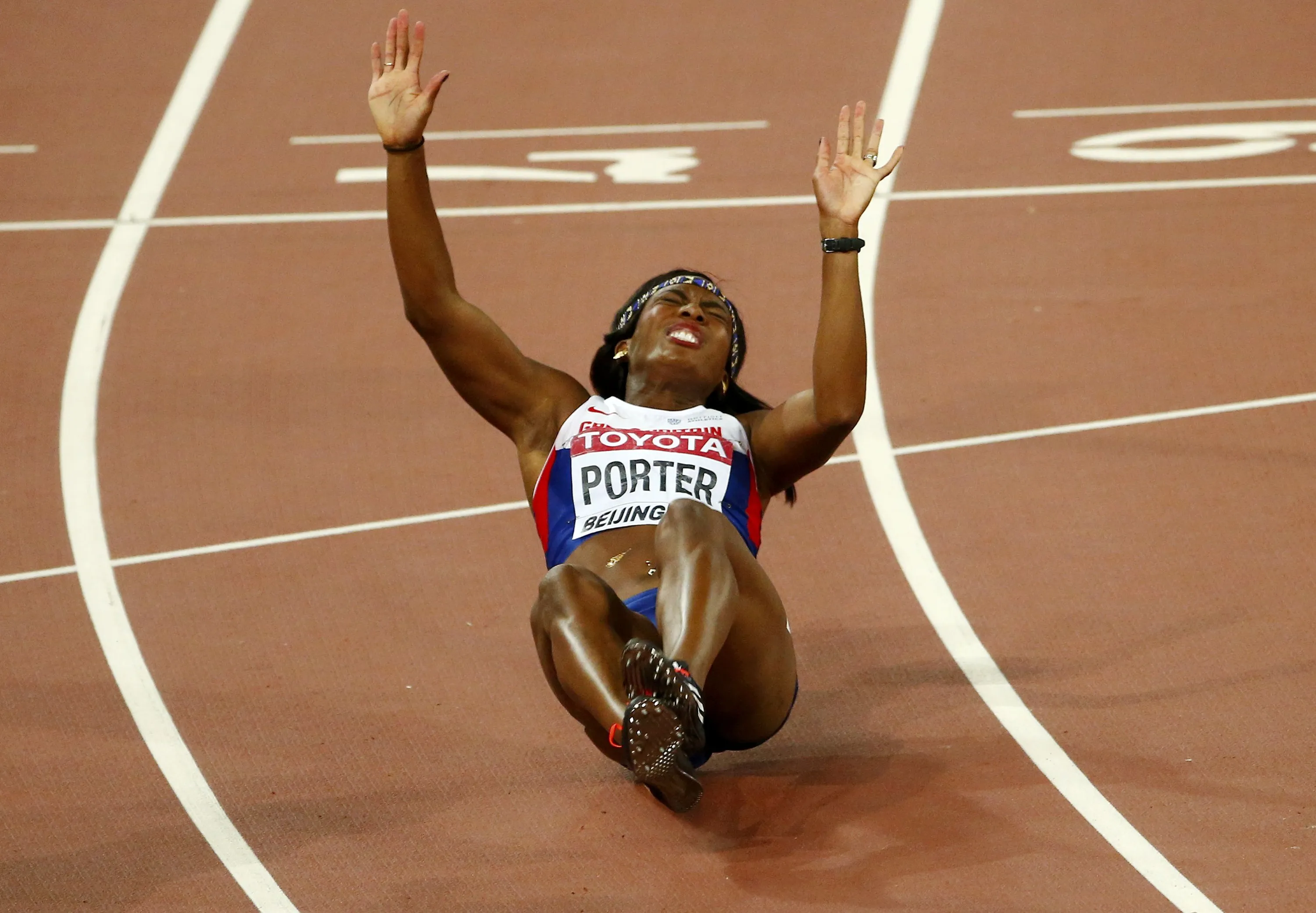 Tiffany Porter of Britain falls after competing in the women's 100 metres hurdles final during the 15th IAAF World Championships at the National Stadium in Beijing, China August 28, 2015. (Photo by David Gray/Reuters)