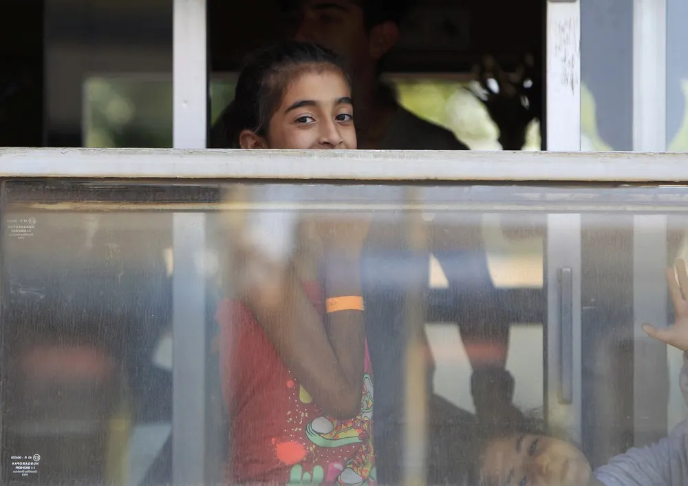 A child of an asylum seeker awaits inside a train to depart to a refugee camp after crossing the border into the European Union's visa-free Schengen travel zone, in Szeged, Hungary, August 27, 2015. (Photo by Bernadett Szabo/Reuters)