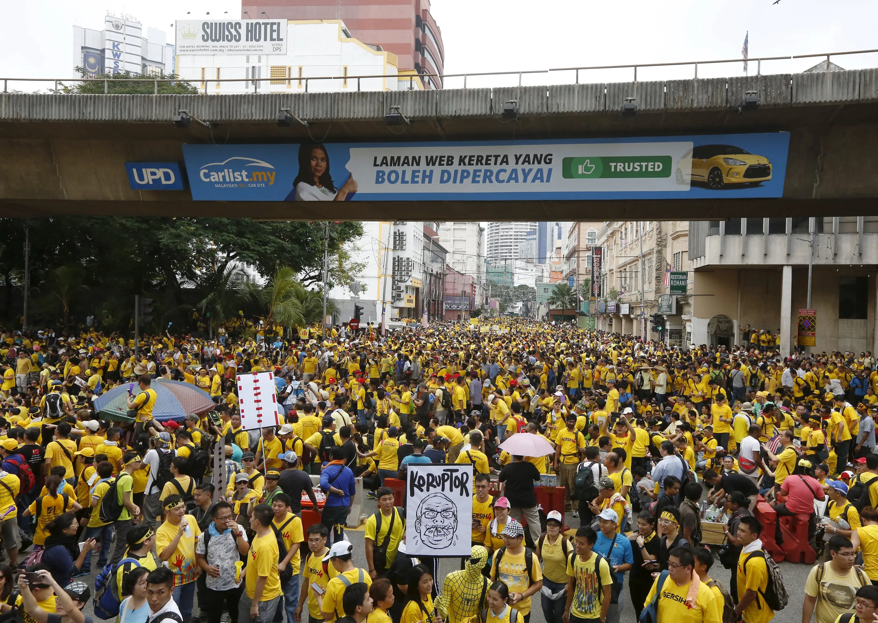 Protesters march at a rally organised by pro-democracy group “Bersih” (Clean) in Malaysia's capital city of Kuala Lumpur, August 29, 2015. The placard reads, “Corruptor”. (Photo by Olivia Harris/Reuters)