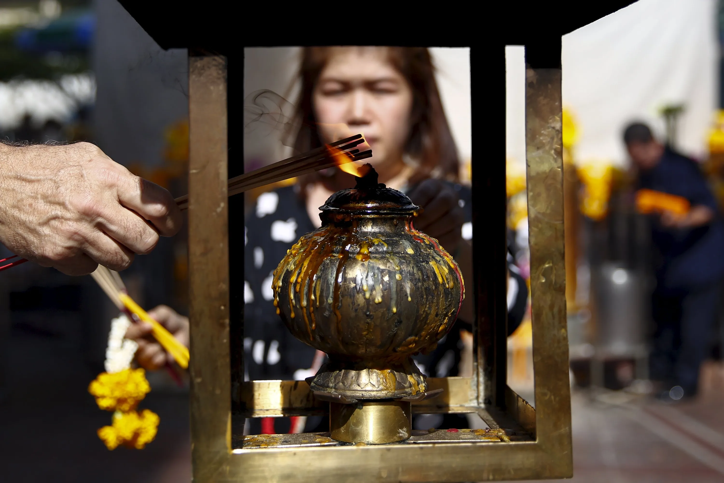 People pray at Erawan Shrine, the site of the recent bomb blast, in Bangkok August 30, 2015. (Photo by Jorge Silva/Reuters)