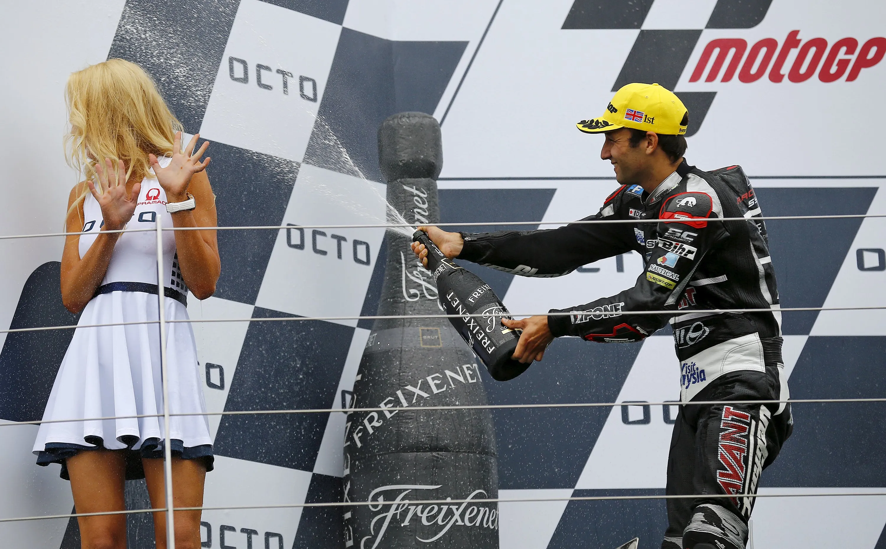 Ajo Motorsport Moto2 rider Johann Zarco of France celebrates his win during the British Grand Prix at the Silverstone Race Circuit, Britain August 30, 2015. (Photo by Darren Staples/Reuters)