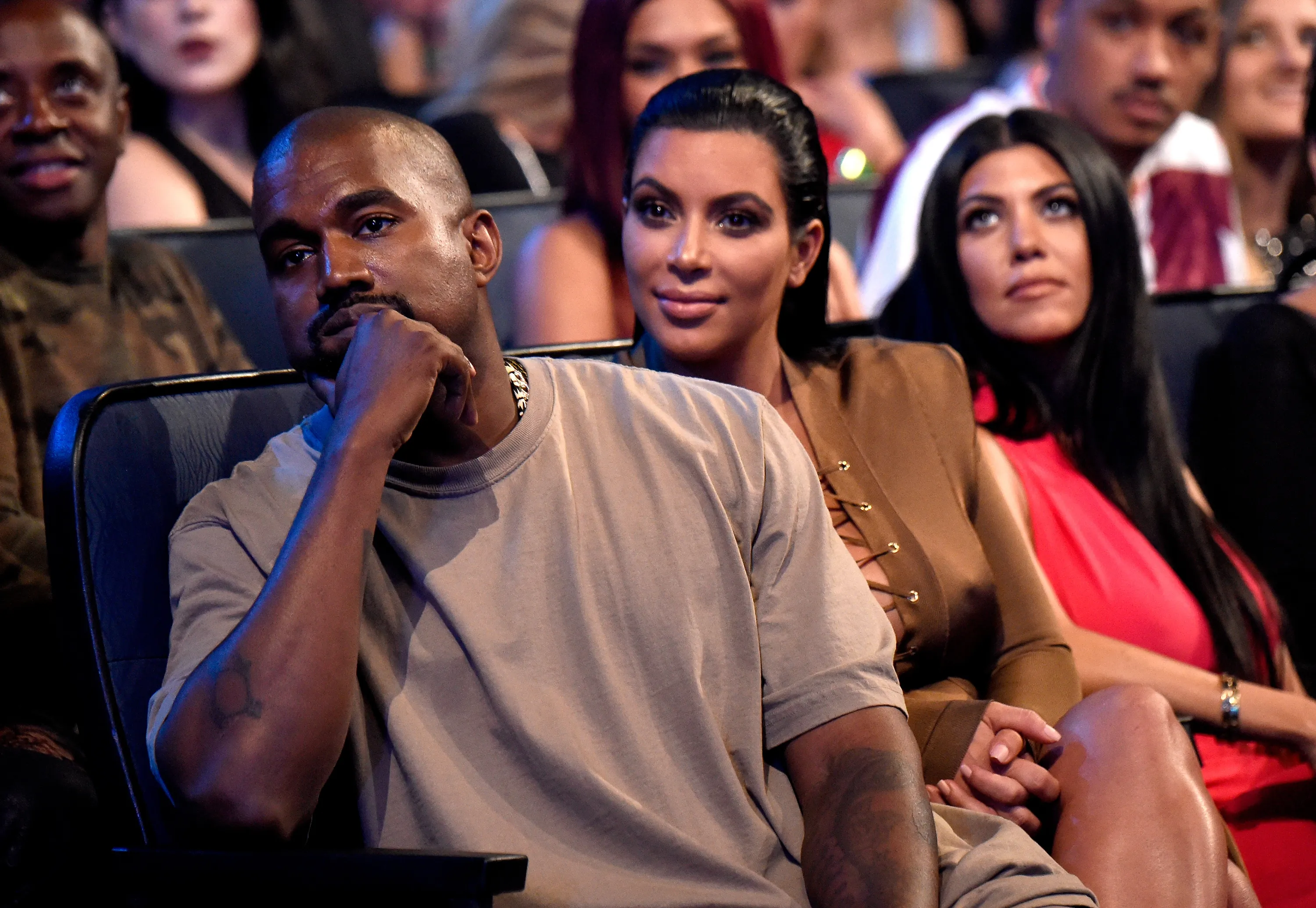 Kanye West and Kim Kardashian West attend the 2015 MTV Video Music Awards at Microsoft Theater on August 30, 2015 in Los Angeles, California. (Photo by Kevin Mazur/MTV1415/WireImage)