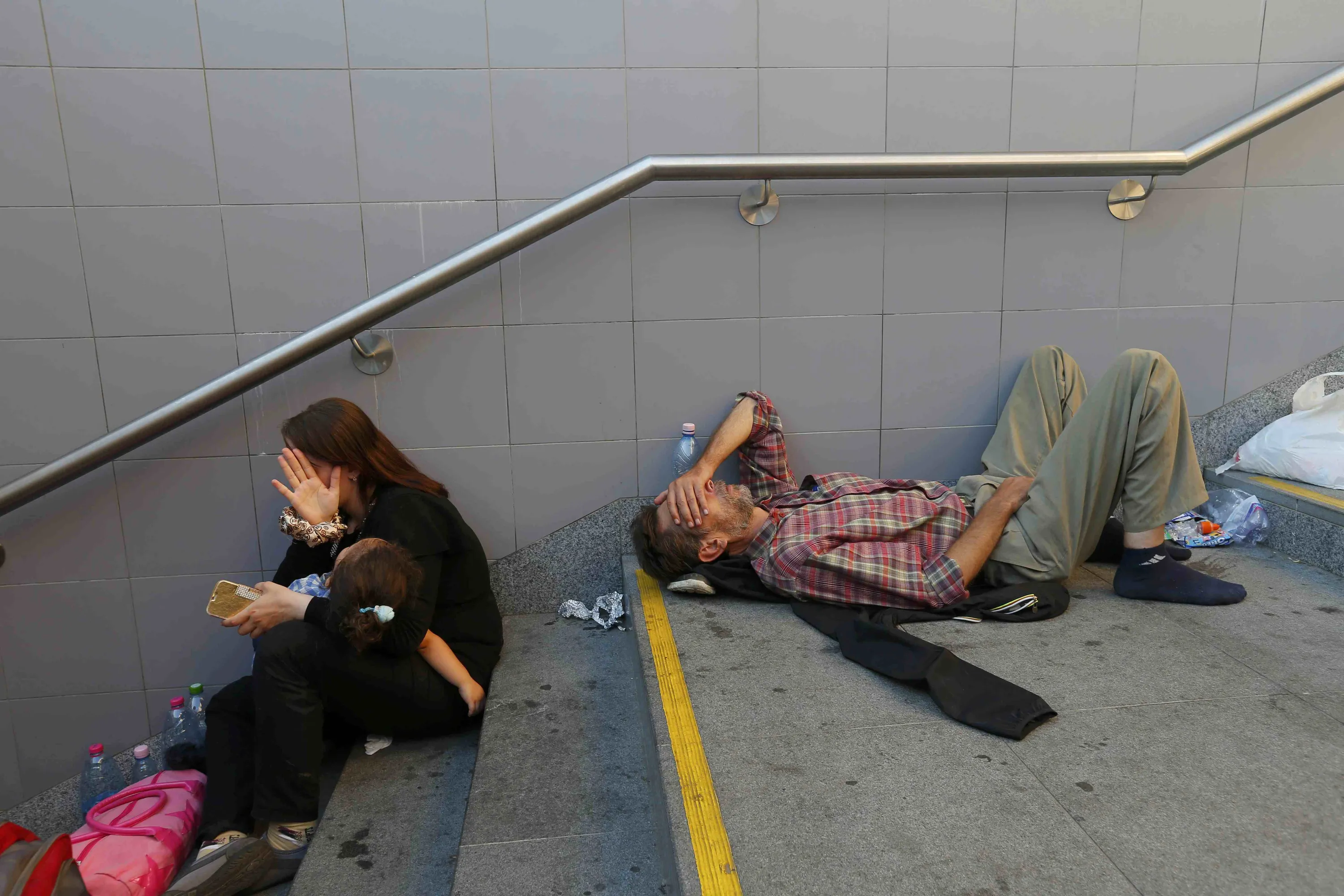 Migrants rest on the steps to an underground station near the main Eastern Railway station in Budapest, Hungary, September 1, 2015. (Photo by Laszlo Balogh/Reuters)