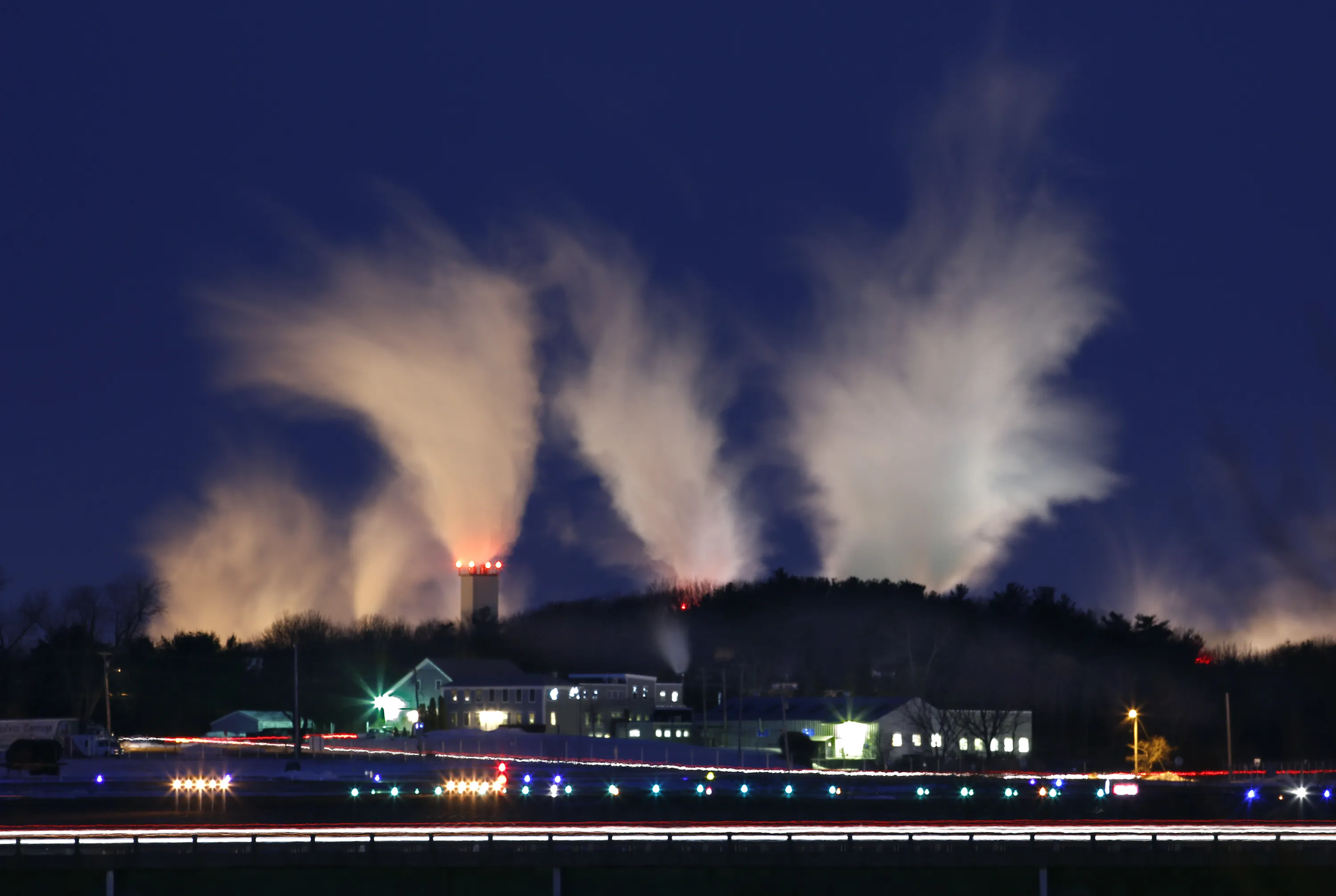 With the temperature at minus 6 degrees Fahrenheit, steam vapors from the Sappi paper mill dissipate into the early morning sky in Westrbook, Maine, Thursday morning, January 24, 2013. (Photo by Robert F. Bukaty/AP Photo)
