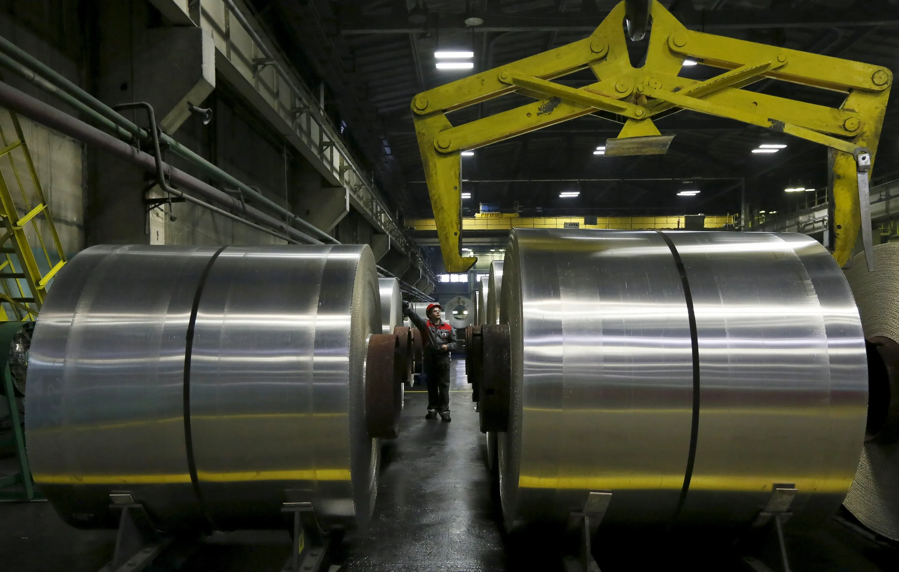 An employee works on rolls of aluminum foil in a shop of the Rusal's SAYANAL foil mill outside the town of Sayanogorsk, Russia, September 3, 2015. (Photo by Ilya Naymushin/Reuters)