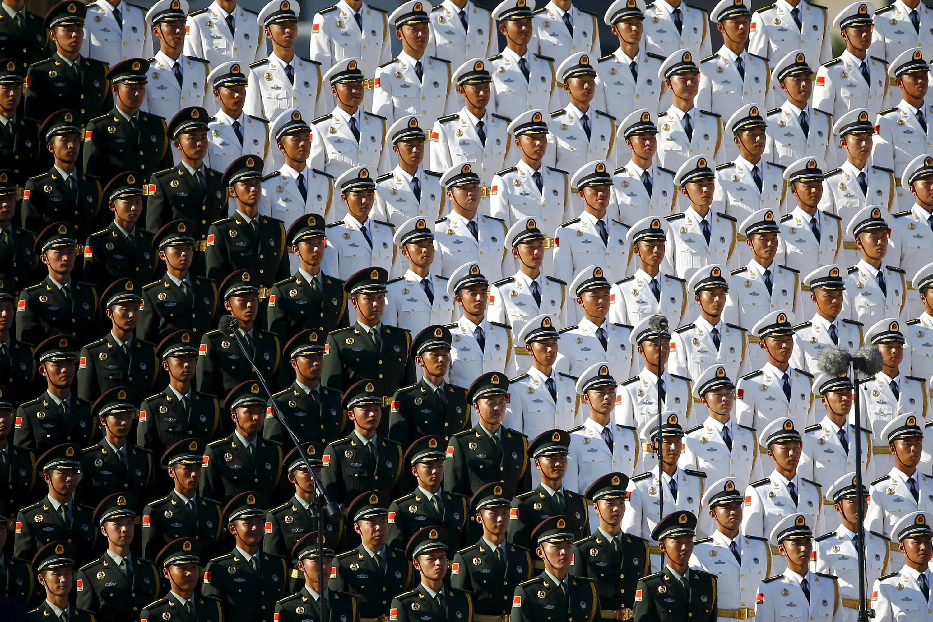 Members of military choir stand in formation at the Tiananmen Square before a military parade to mark the 70th anniversary of the end of World War Two, in Beijing, China September 3, 2015. (Photo by Damir Sagolj/Reuters)