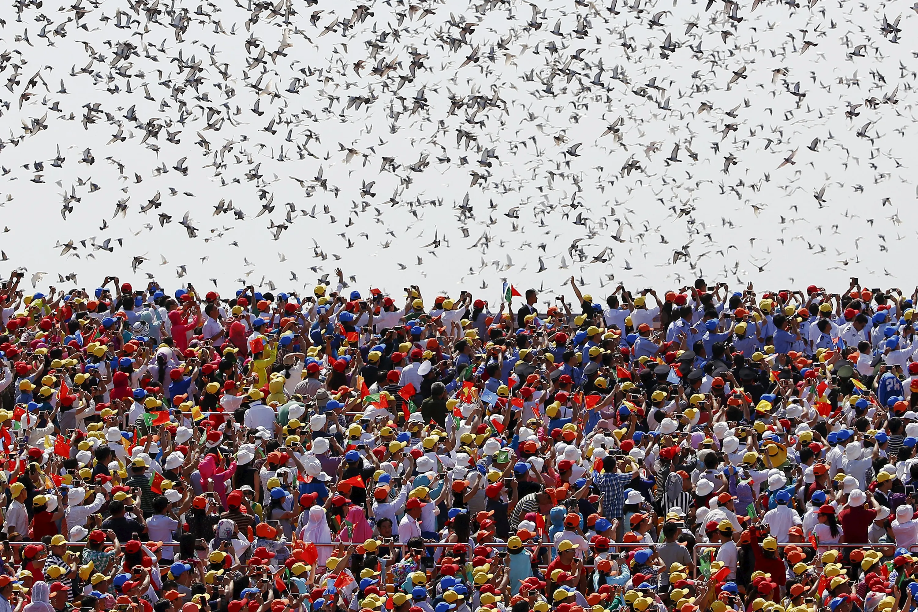 Birds are released at the end of the military parade marking the 70th anniversary of the end of World War Two, in Beijing, China, September 3, 2015. (Photo by Damir Sagolj/Reuters)