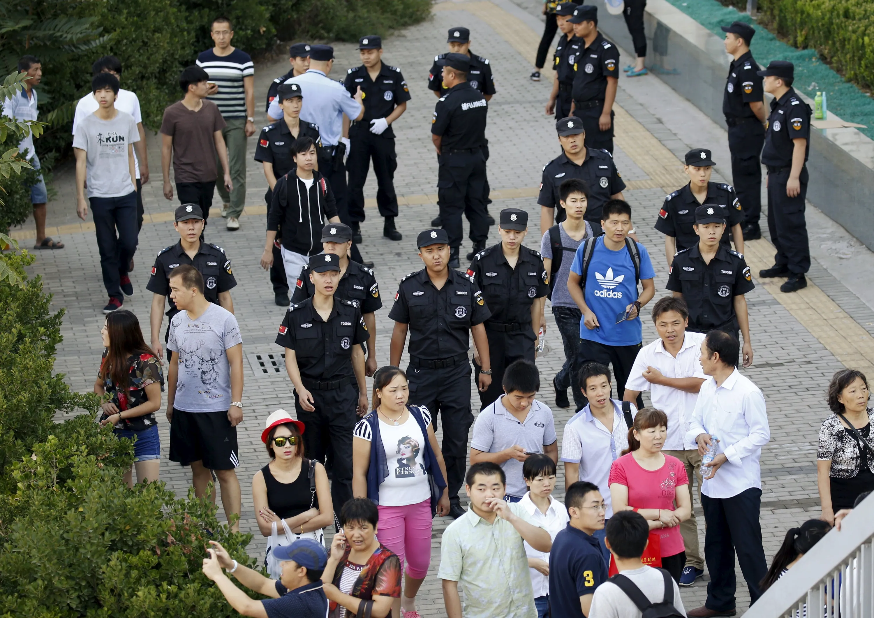 Security officers disperse bystanders, ahead of the military parade to mark the 70th anniversary of the end of World War Two, in Beijing, China, September 3, 2015. (Photo by Kim Kyung-Hoon/Reuters)