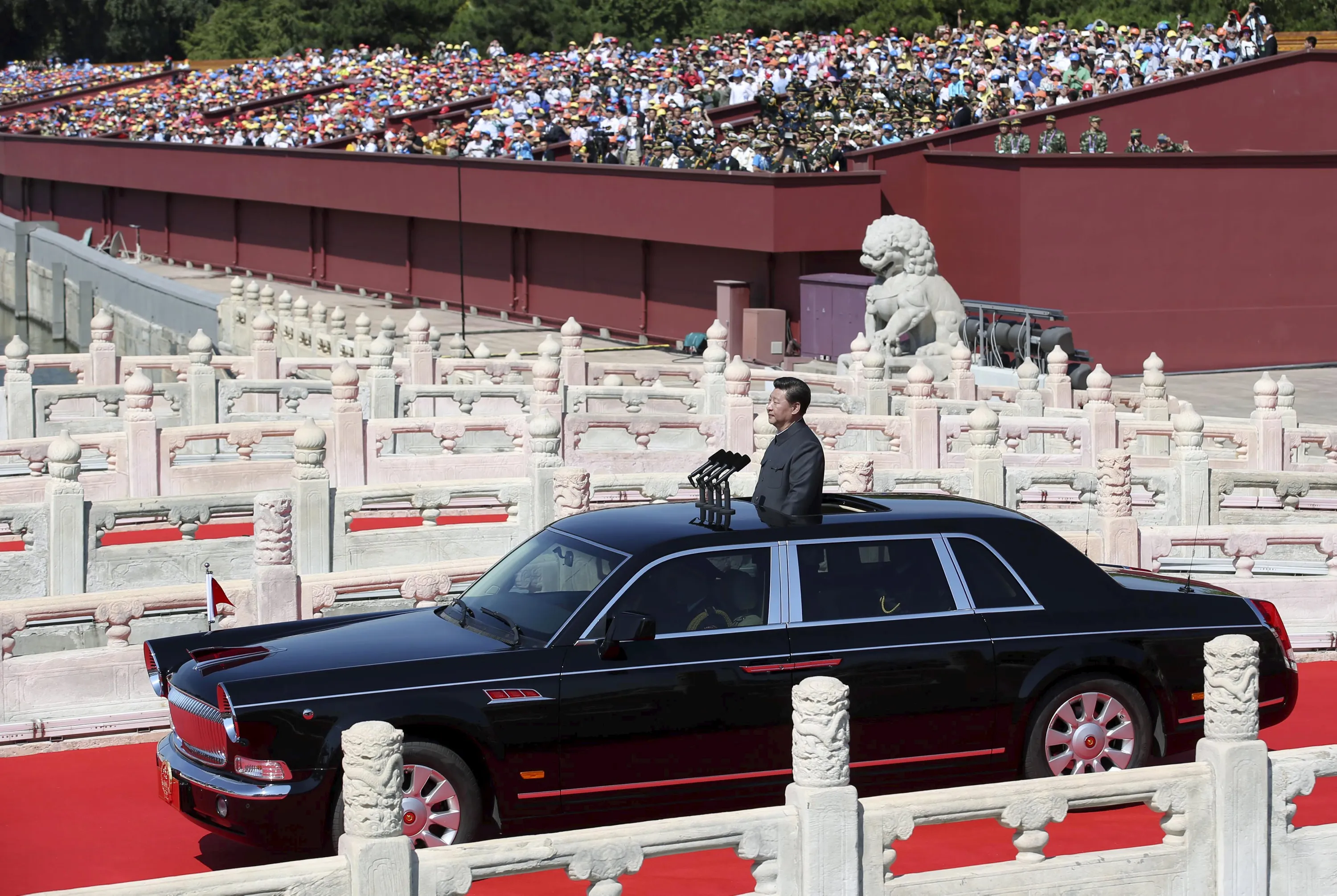 Chinese President Xi Jinping stands in a car on his way to inspect the army, at the beginning of the military parade marking the 70th anniversary of the end of World War Two, in Beijing, China, September 3, 2015. (Photo by Reuters/Stringer)