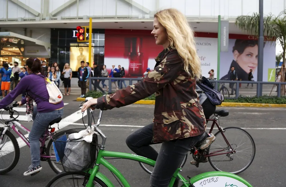 Spanish singer Christina Rosenvinge, a former member of the “Christina y Los Subterraneos” (“Christina and the Underground”) band, participates in a bike ride with bicycle activists in Lima's Miraflores district, Peru September 2, 2015. Rosenvinge is in Lima for a concert and to present her new album called “Lo Nuestro” (“Ours”). (Photo by Janine Costa/Reuters)