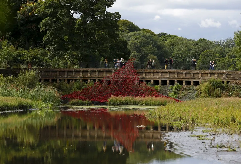 Visitors look at a poppies installation titled “Wave” by Paul Cummins at Yorkshire Sculpture Park near Wakefield, Britain September 3, 2015. (Photo by Darren Staples/Reuters)