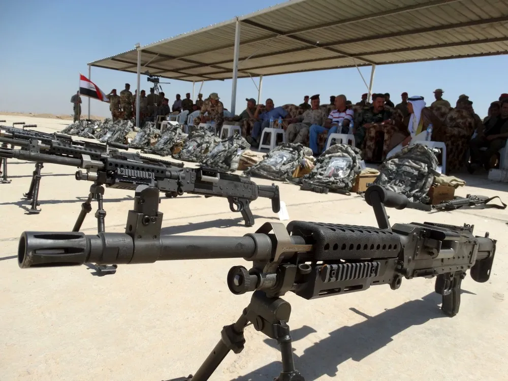Weapons from the U.S. are displayed during a ceremony to present weapons to Sunni tribesmen at Camp Habbaniyah, in the eastern city of Ramadi September 3, 2015. (Photo by Reuters/Stringer)