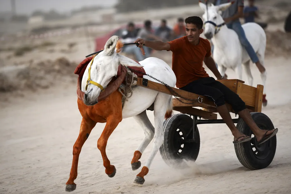 A Bahraini man rides his donkey cart as he competes in a local race in the village of Saar, West of the capital Manama, on September 4, 2015. (Photo by Mohammed Al-Shaikh/AFP Photo)
