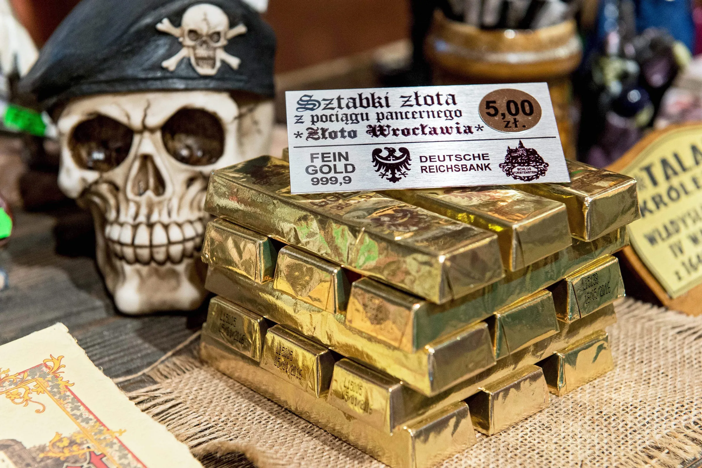 Chocolate Gold Bars, souvenirs inspired by the quest for the so-called Nazi Gold Train are on display for sale at Ksiaz Castle in Walbrzych, Poland, 04 Septemeber 2015. Peter Koper and Andreas Richter claimed that have discovered an armoured train from World War II in the area of Walbrzych (Lower Silesia province), which has been dubbed by the media the Nazi Gold Train. Earlier today, on the request of the Mayor of Walbrzych, Polish Army inspected the alleged area, where the train could be located. (Photo by Maciej Kulczynski/EPA)