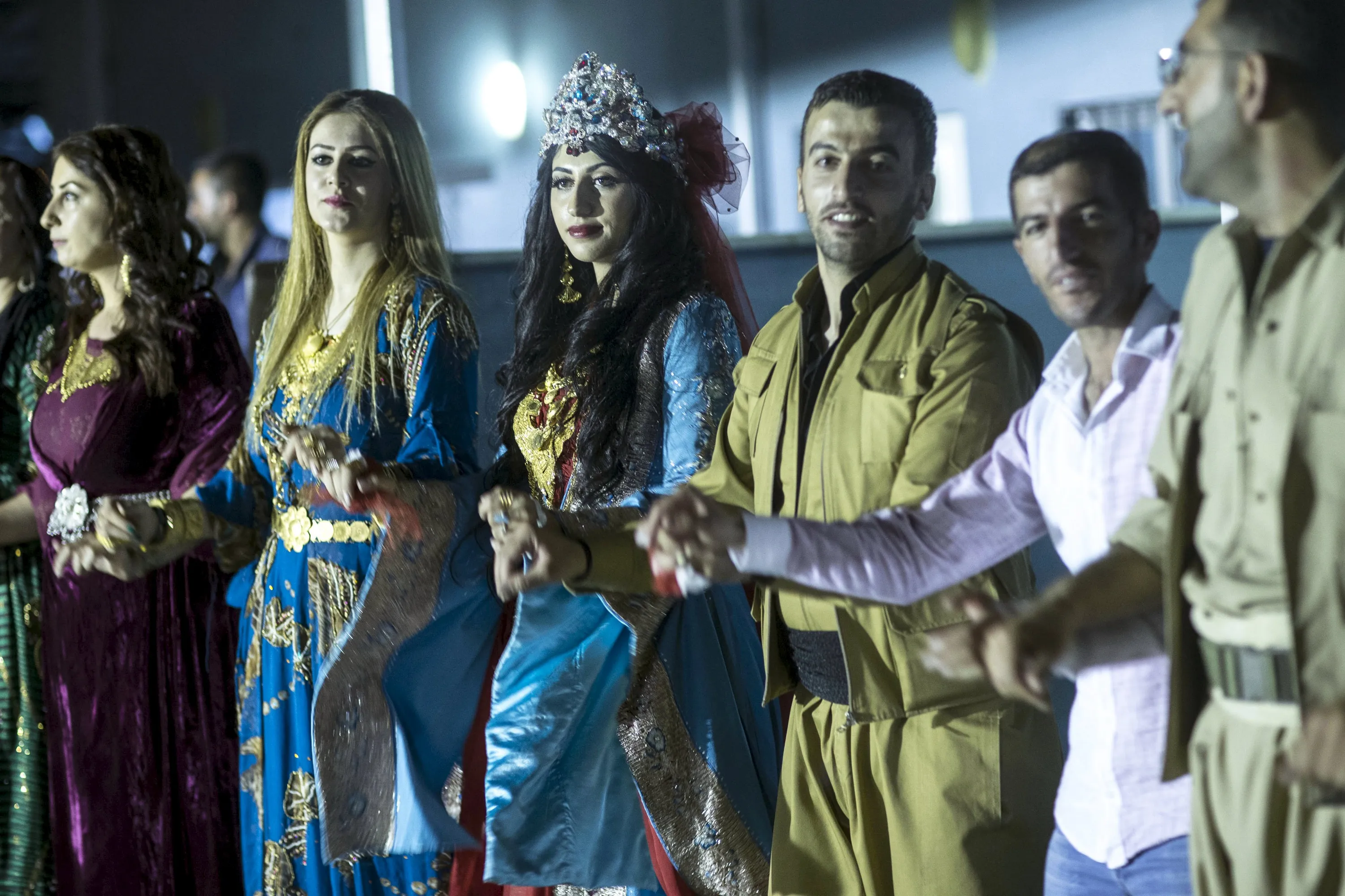 Turkish Kurdish groom Sefket Baskin (3rd R) and his bride Dilges Baskin (3rd L) dance in traditional dresses during their pre-wedding henna ceremony in Yuksekova in the Kurdish-dominated southeastern Hakkari province of Turkey, September 5, 2015. (Photo by Huseyin Aldemir/Reuters)