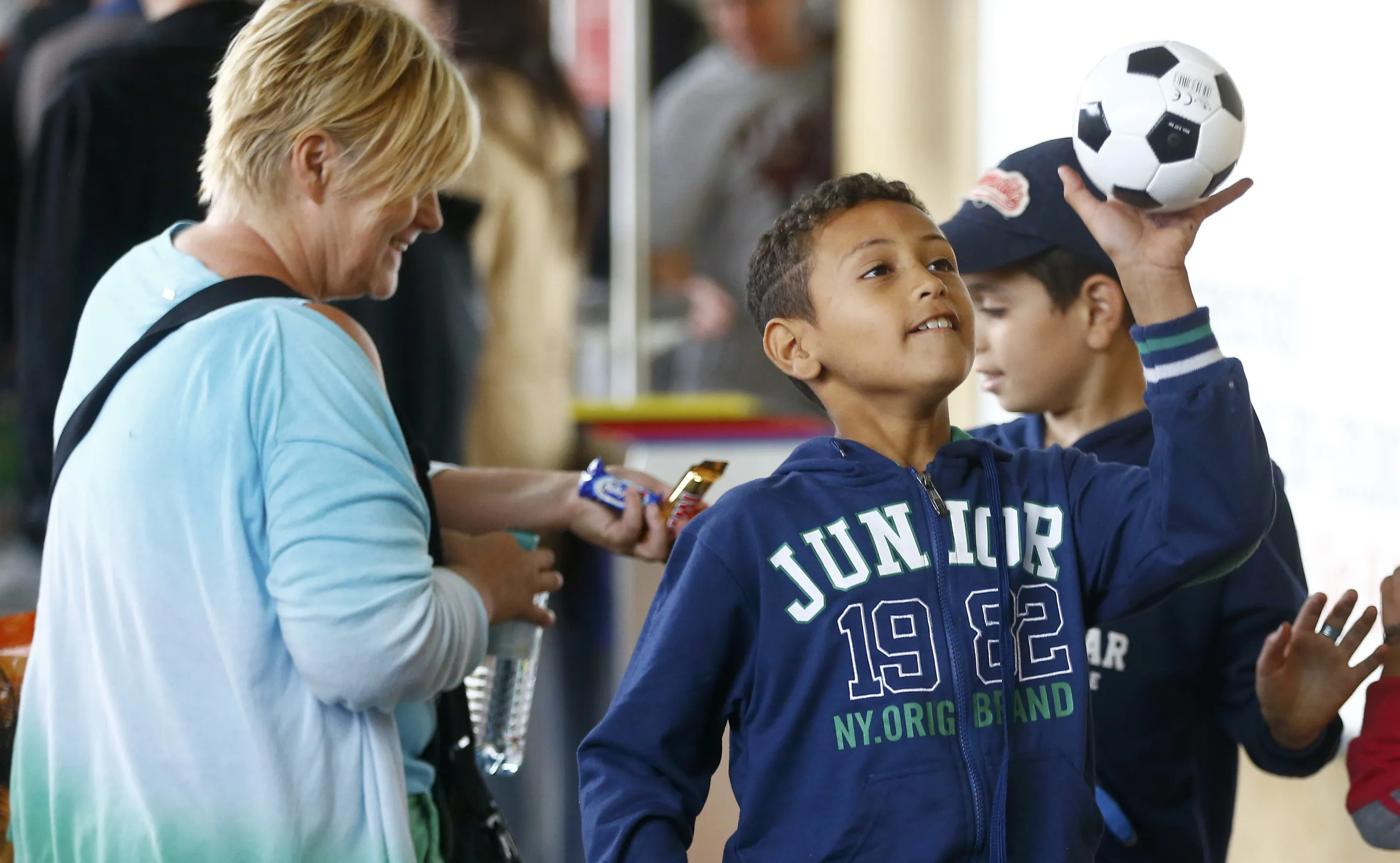 A woman gives sweets to migrants' children at a railway station in Vienna, Austria September 5, 2015. (Photo by Dominic Ebenbichler/Reuters)