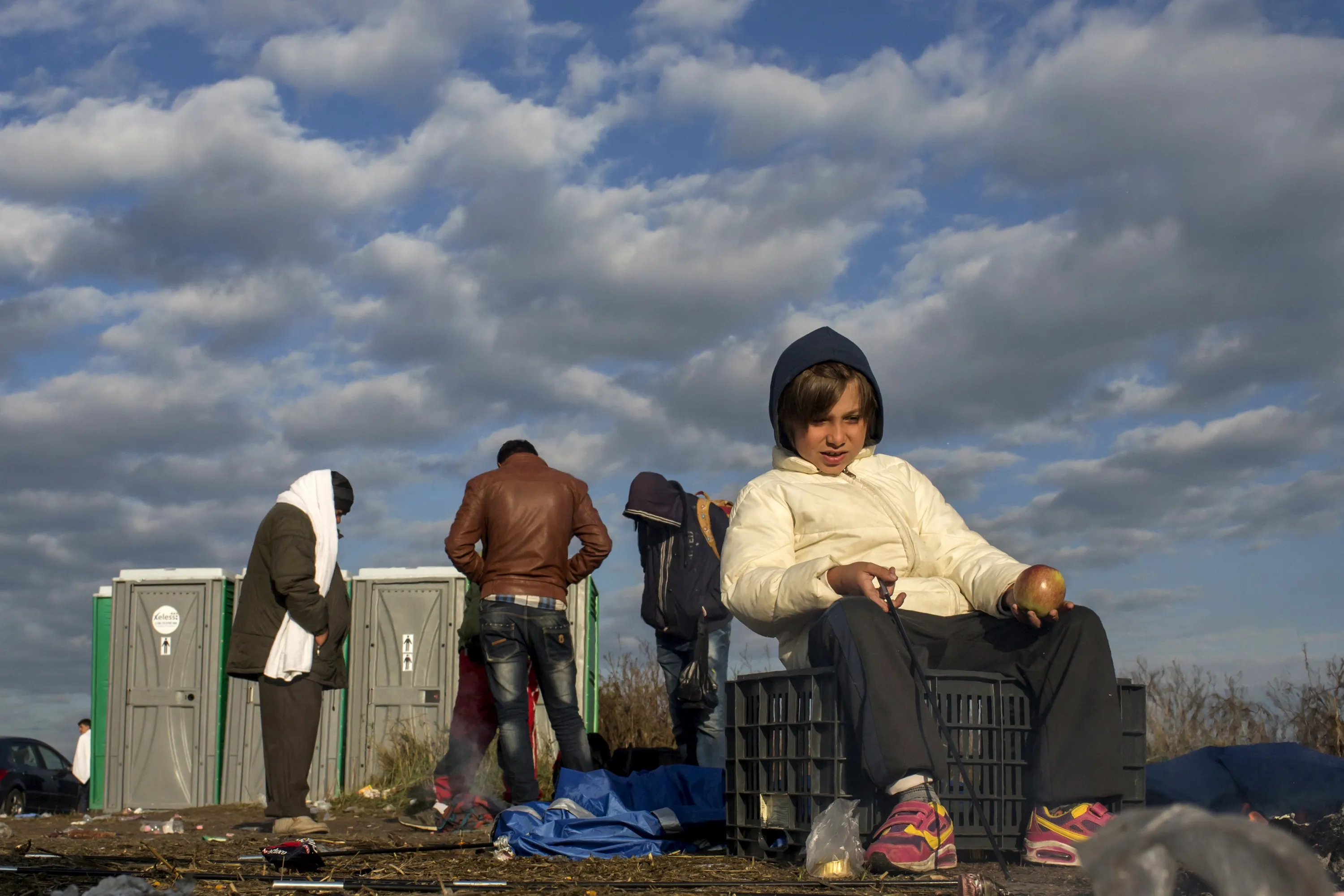 A child from Syria sits on a field while waiting to be transported to a reception camp near the village of Roszke, Hungary September 6, 2015. (Photo by Marko Djurica/Reuters)