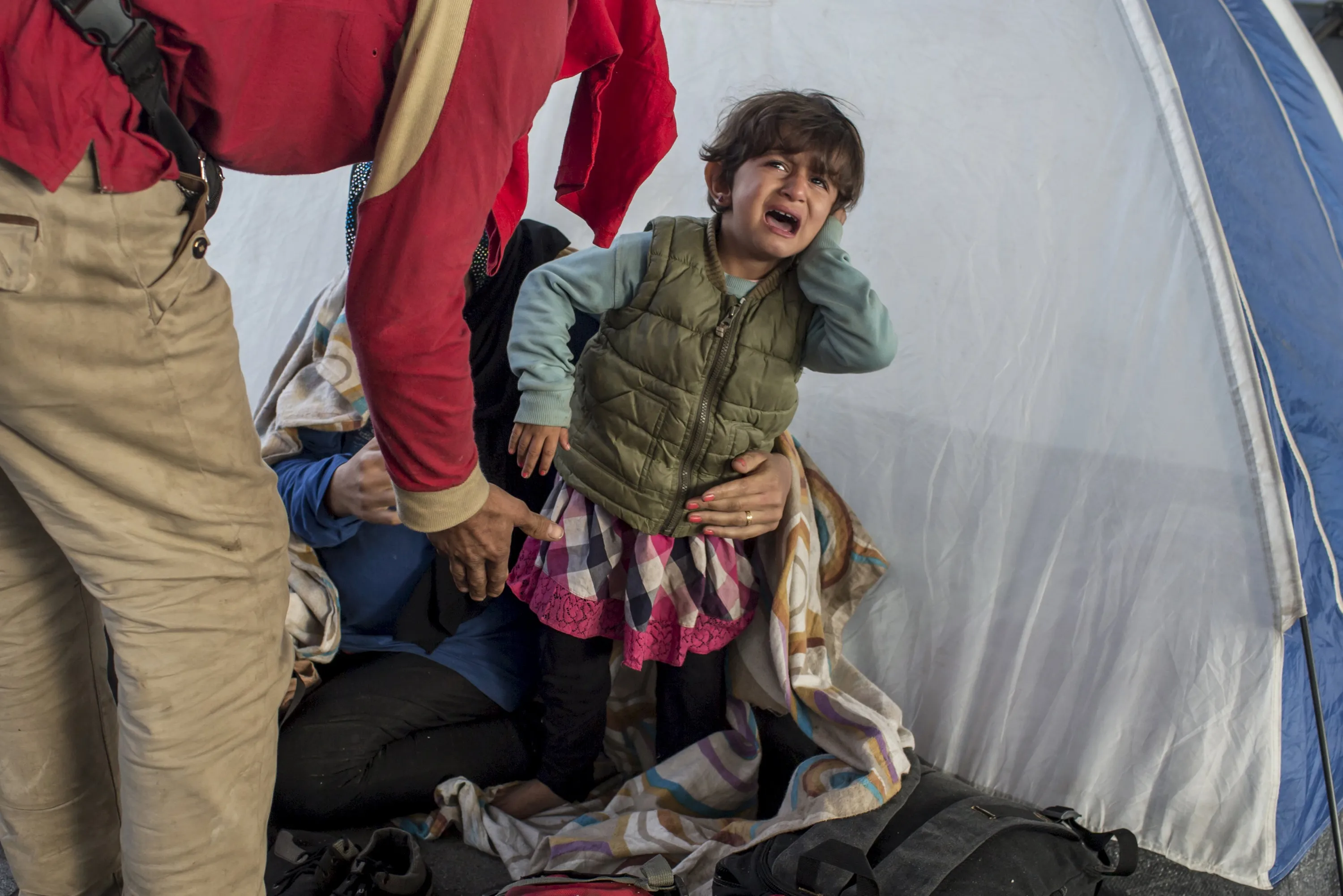 A child from Syria cries at a gas station while waiting to be transported to a reception camp near the village of Roszke, Hungary September 6, 2015. (Photo by Marko Djurica/Reuters)