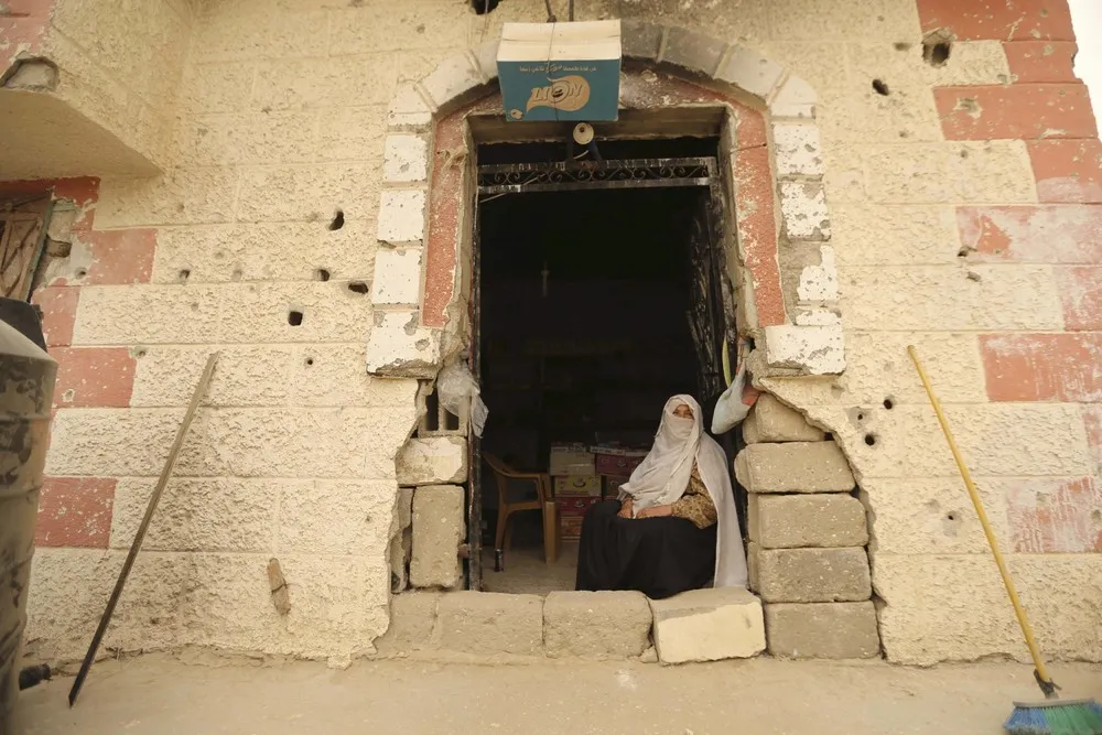 A Palestinian woman sits at her house, that witnesses said was damaged by Israeli shelling during a 50-day war in 2014 summer, during a sandstorm in Khan Younis in the southern Gaza Strip September 8, 2015. (Photo by Ibraheem Abu Mustafa/Reuters)