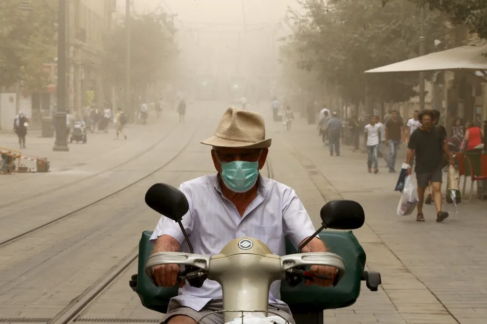 A man drives with his face covered during a sandstorm in Jerusalem September 8, 2015. (Photo by Ammar Awad/Reuters)