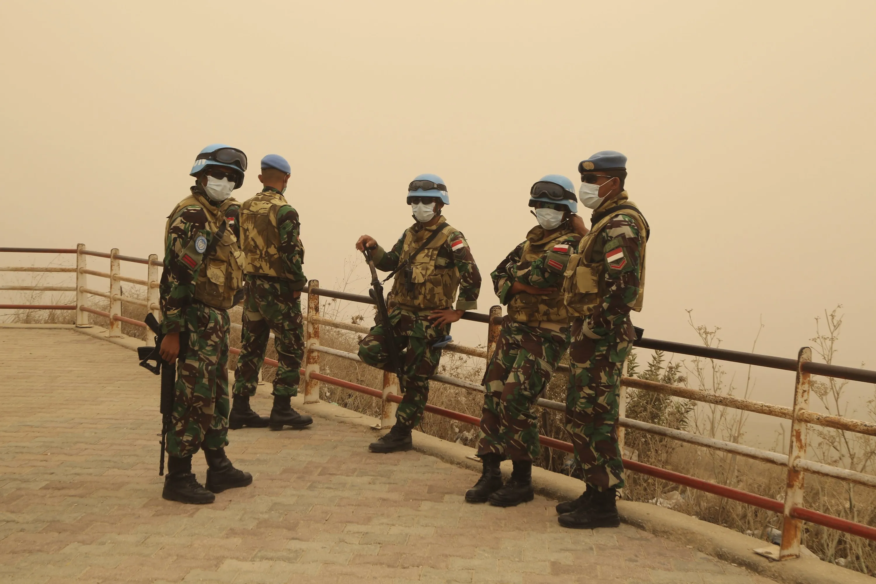 U.N peacekeepers of the United Nations Interim Force in Lebanon (UNIFIL) wear face masks while they monitor the Lebanese-Israeli border during a sandstorm in Kfar Kila village, in south Lebanon September 8, 2015. (Photo by Aziz Taher/Reuters)