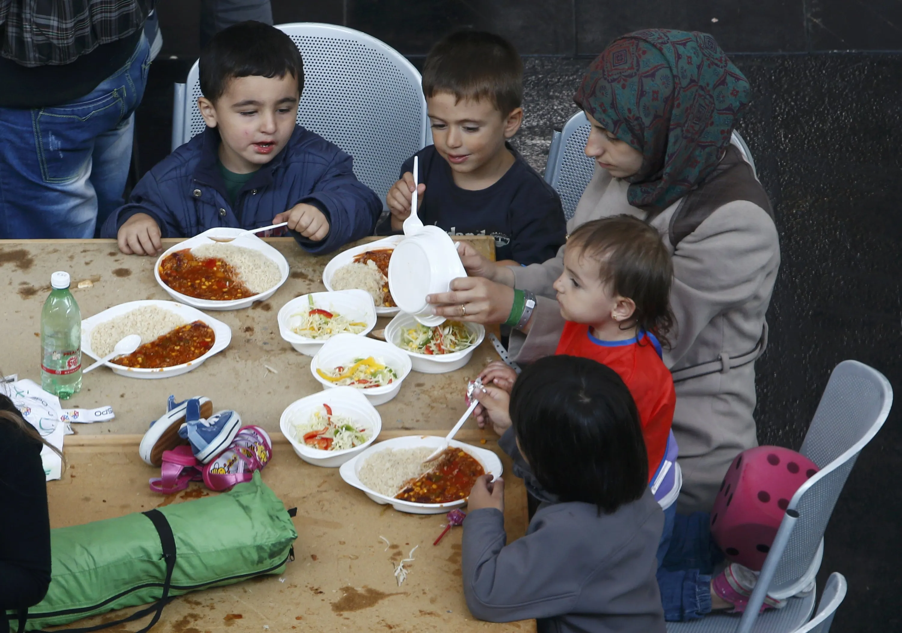 Migrants eat at a makeshift mensa at the fair ground of Munich, Germany September 7, 2015. (Photo by Michaela Rehle/Reuters)