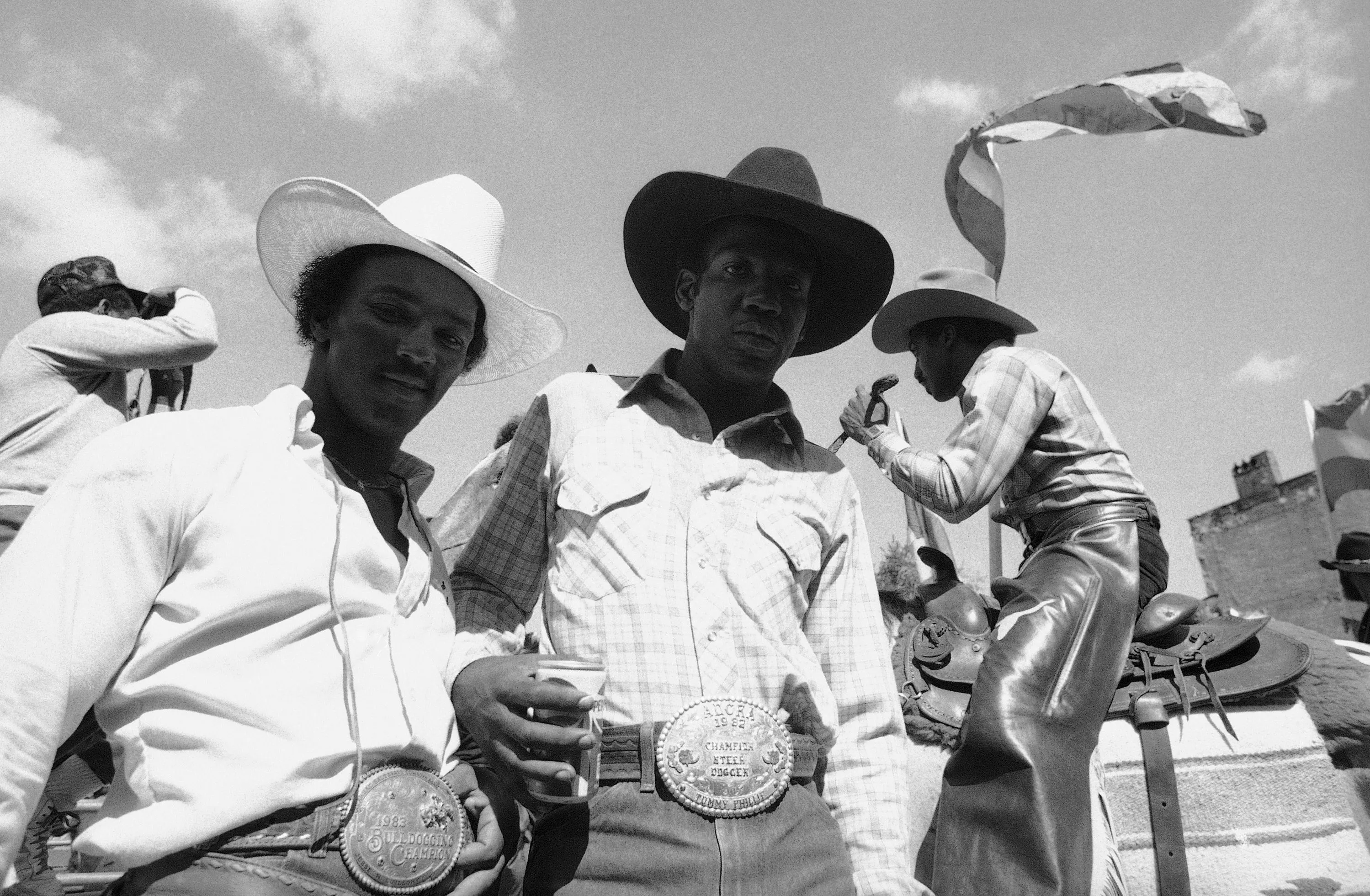 Members of the Black Cowboy Association parade past spectators during the opening ceremonies Saturday of a two-day rodeo in New York's Harlem Saturday, September 9, 1984 benefiting the United Negro College Fund and other charities. The rodeo was held a vacant lot at 137th St. and Eighth Avenue specially prepared to accommodate 15 bulls, 25 horses, 15 steers and 15 calves making up the five rodeo events from bull riding to calf roping. (Photo by Todd James/AP Photo)