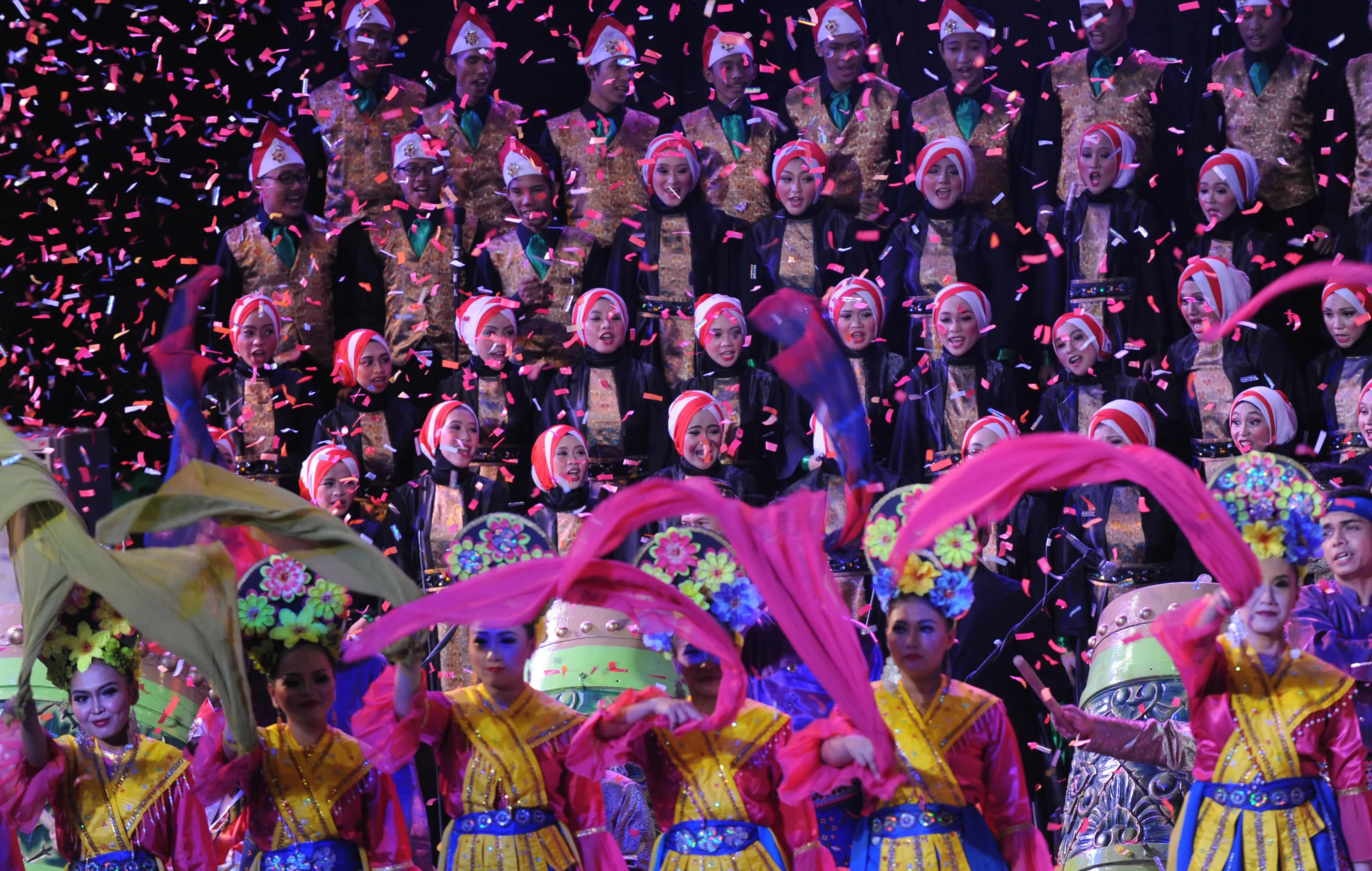 Indonesian dancers perform after releasing 18th Asian Games 2018 logo in Jakarta, Indonesia. Indonesia officially released Papua endanger bird, Cendrawasih bird as the logo of 18th Asian Games 2018, which will be hosted by Indonesia, September 9, 2015. (Photo by Agung Kuncahya B./Xinhua via ZUMA Wire)