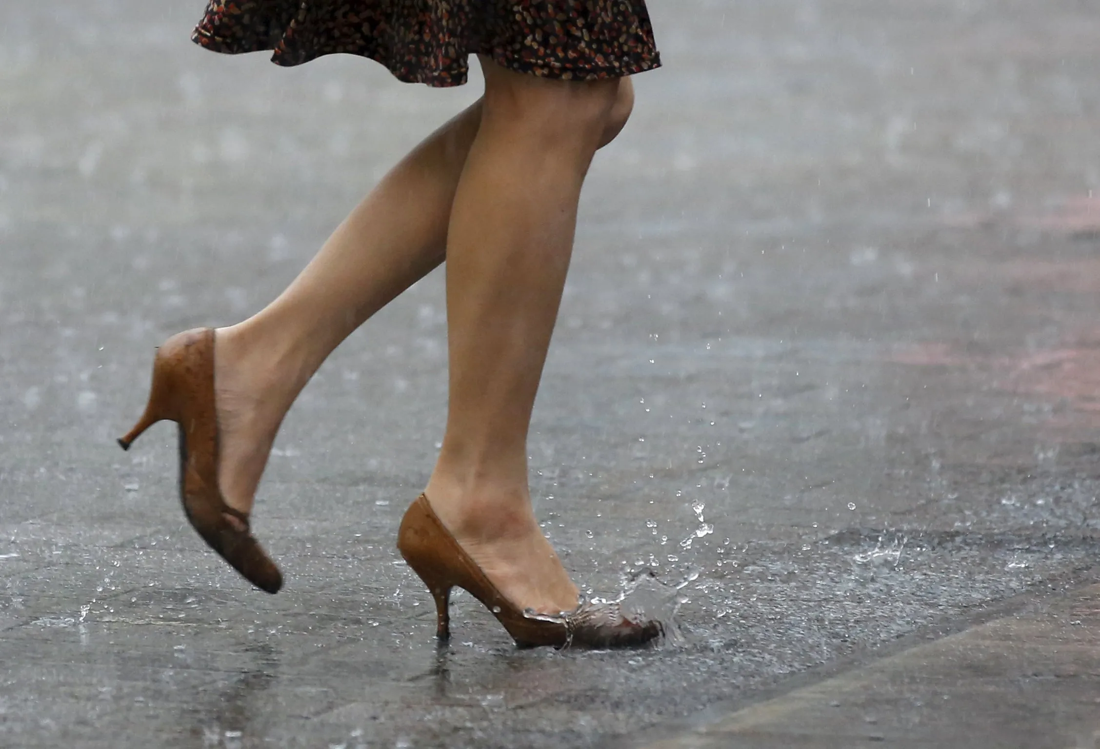 A woman walks in heavy rain caused by typhoon Etau in Tokyo's business district September 9, 2015. Typhoon Etau made landfall in central Japan on Wednesday morning, bringing strong winds and heavy rains as authorities warned of possible landslides and flooding, local media reported. (Photo by Toru Hanai/Reuters)