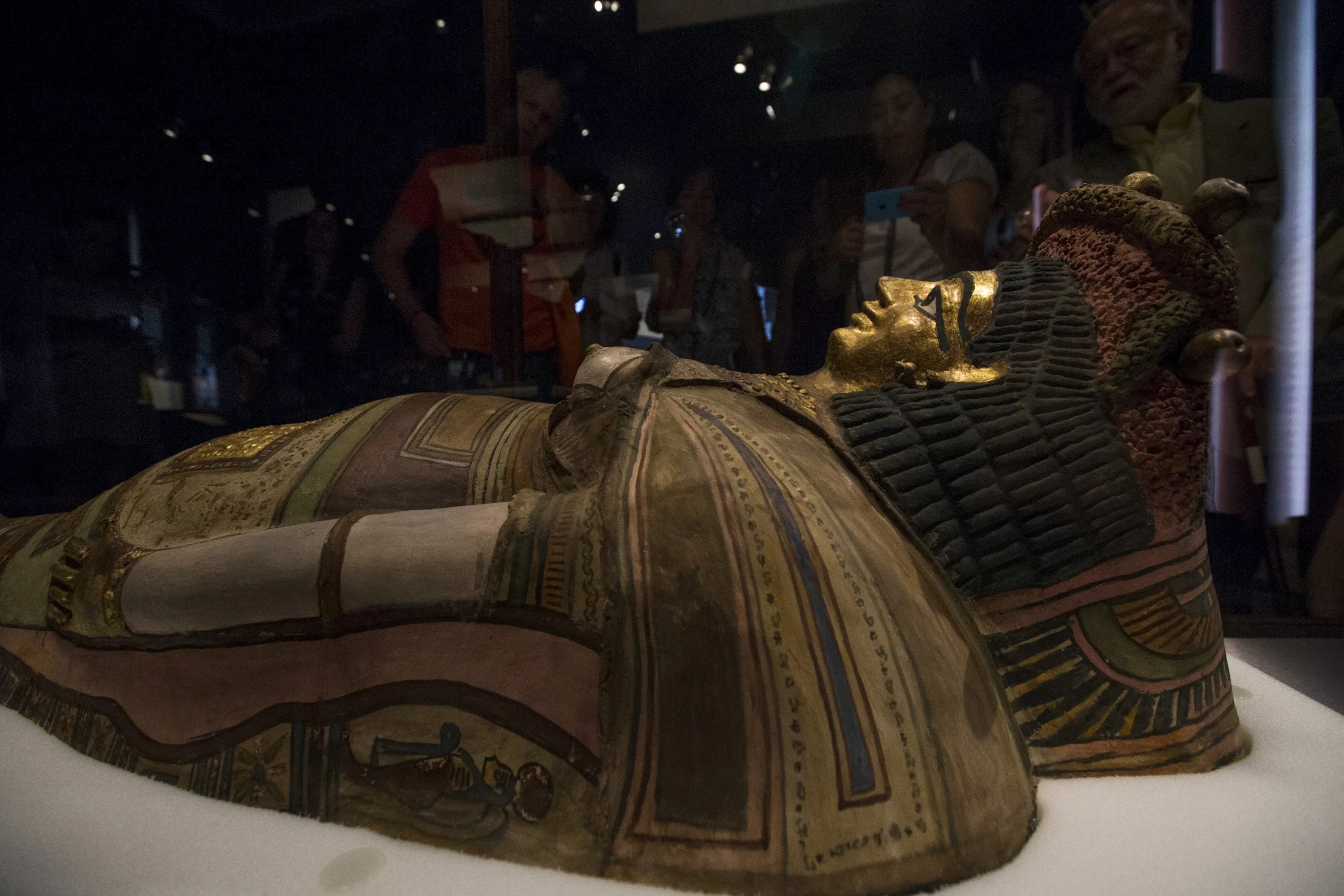 A coffin lid is seen on display during a media preview for the exhibit “Mummies: New Secrets from the Tombs” at the Natural History Museum of Los Angeles County in Los Angeles, California September 10, 2015. (Photo by Mario Anzuoni/Reuters)