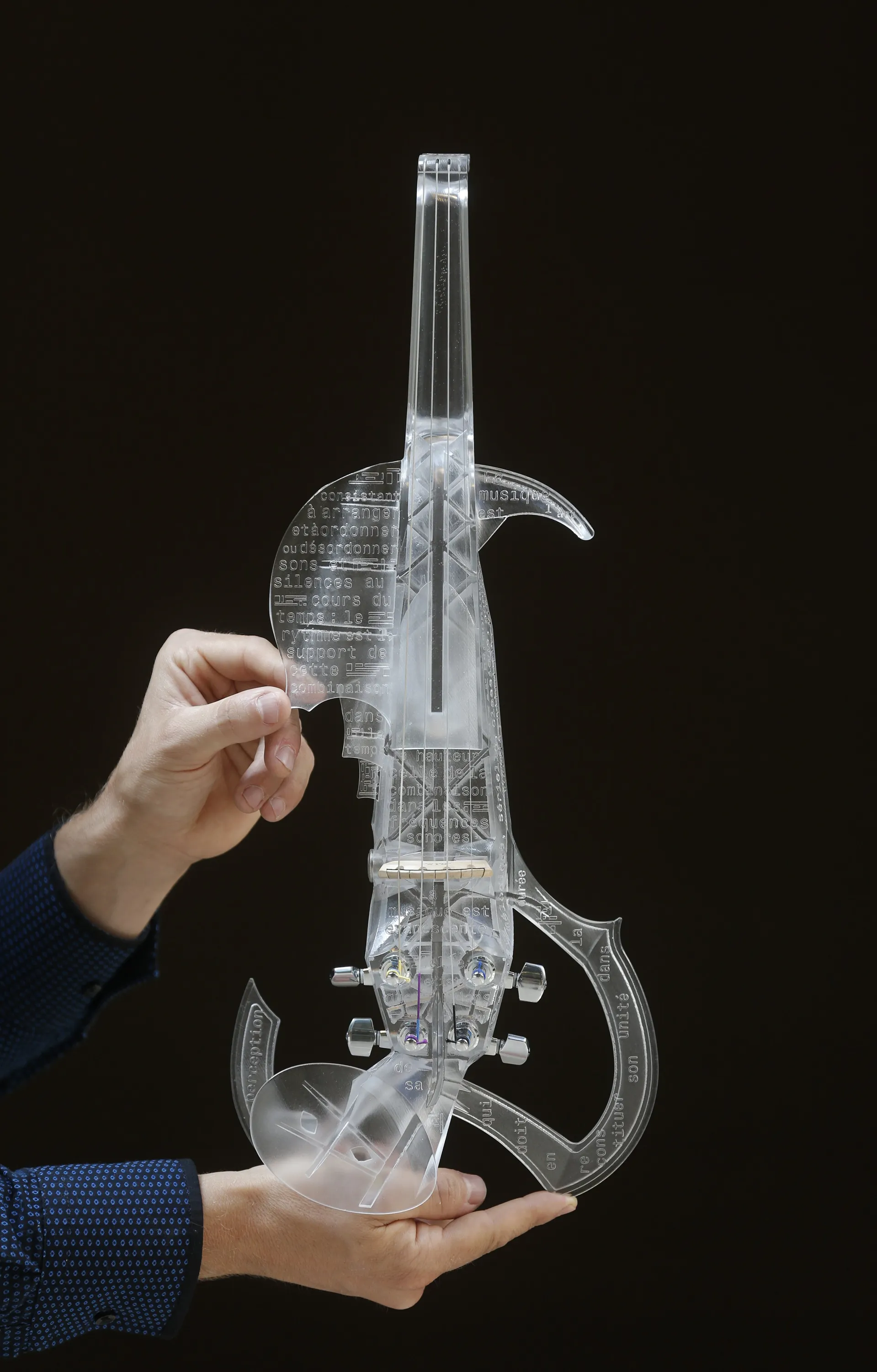 French engineer and professional violinist Laurent Bernadac poses with the “3Dvarius”, a 3D printed violin made of transparent resin, during an interview with Reuters in Paris, France, September 11, 2015. (Photo by Christian Hartmann/Reuters)