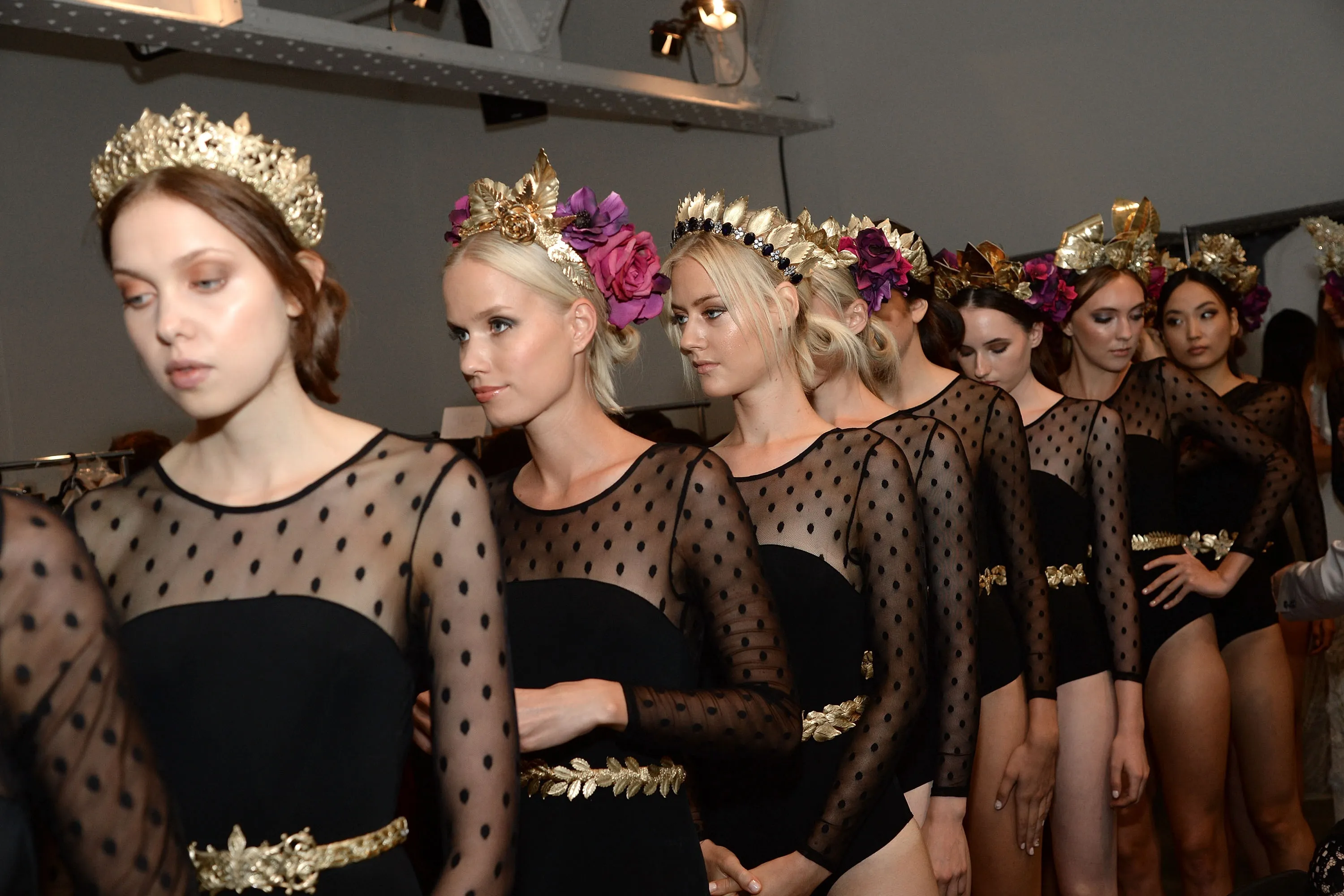 Models backstage at the Australian Evening & Bridal Wear during Spring 2016 New York Fashion Week: The Shows at Pier 59 on September 10, 2015 in New York City. (Photo by Ben Gabbe/Getty Images)