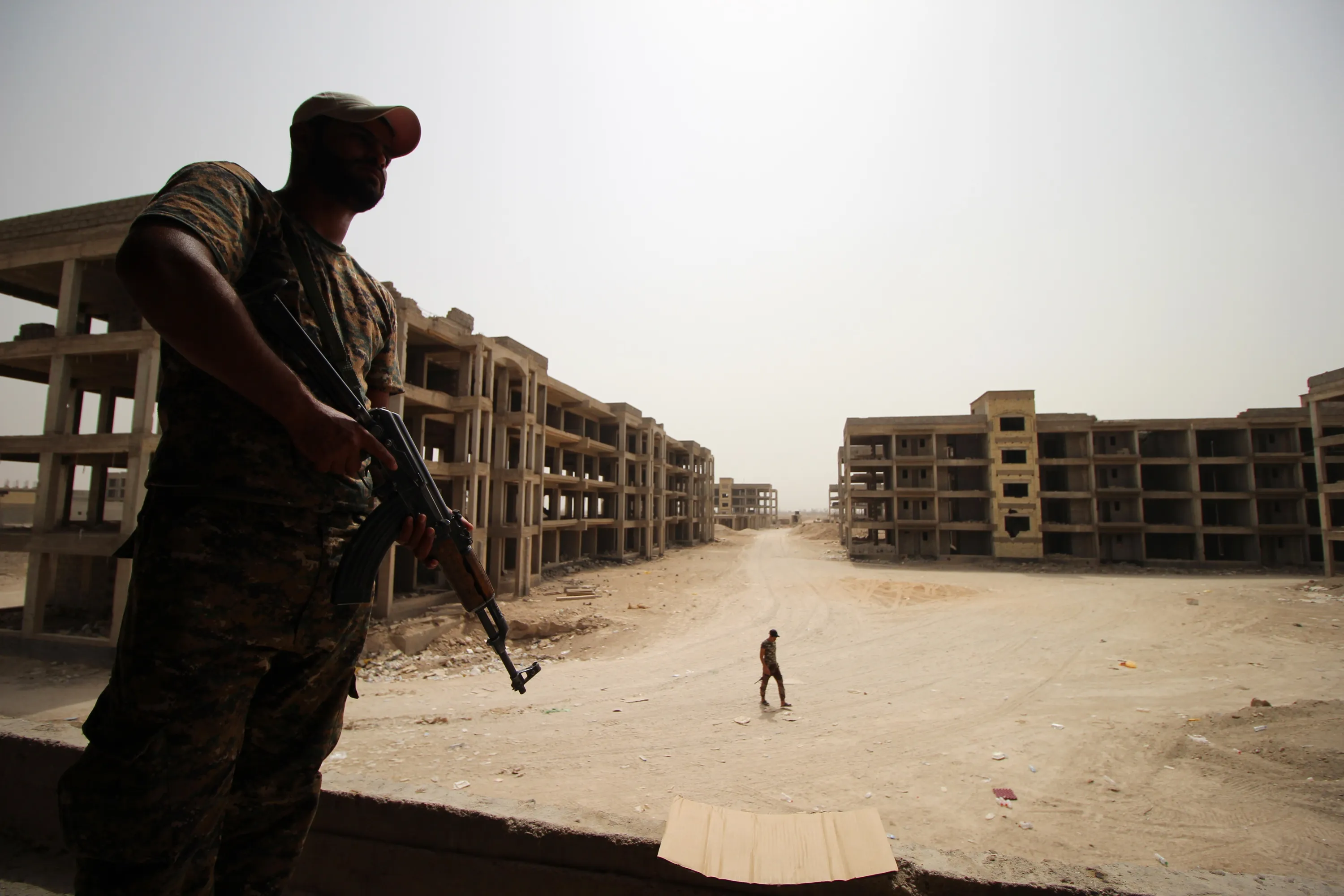 Members of the Popular Mobilisation units hold a position in the Al-Hayakel area on the eastern outskirts of Fallujah, Iraq during a military operation conducted with government forces against Islamic State group jihadists on September 10, 2015. (Photo by Haidar Mohammed Ali/AFP Photo)