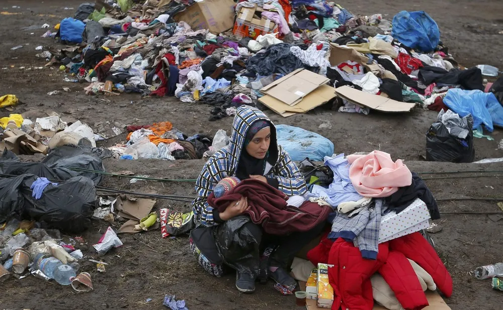 A mother breastfeeds her baby in front of piles of rubbish at a migrant collection point in Roszke, Hungary September 11, 2015. (Photo by Laszlo Balogh/Reuters)