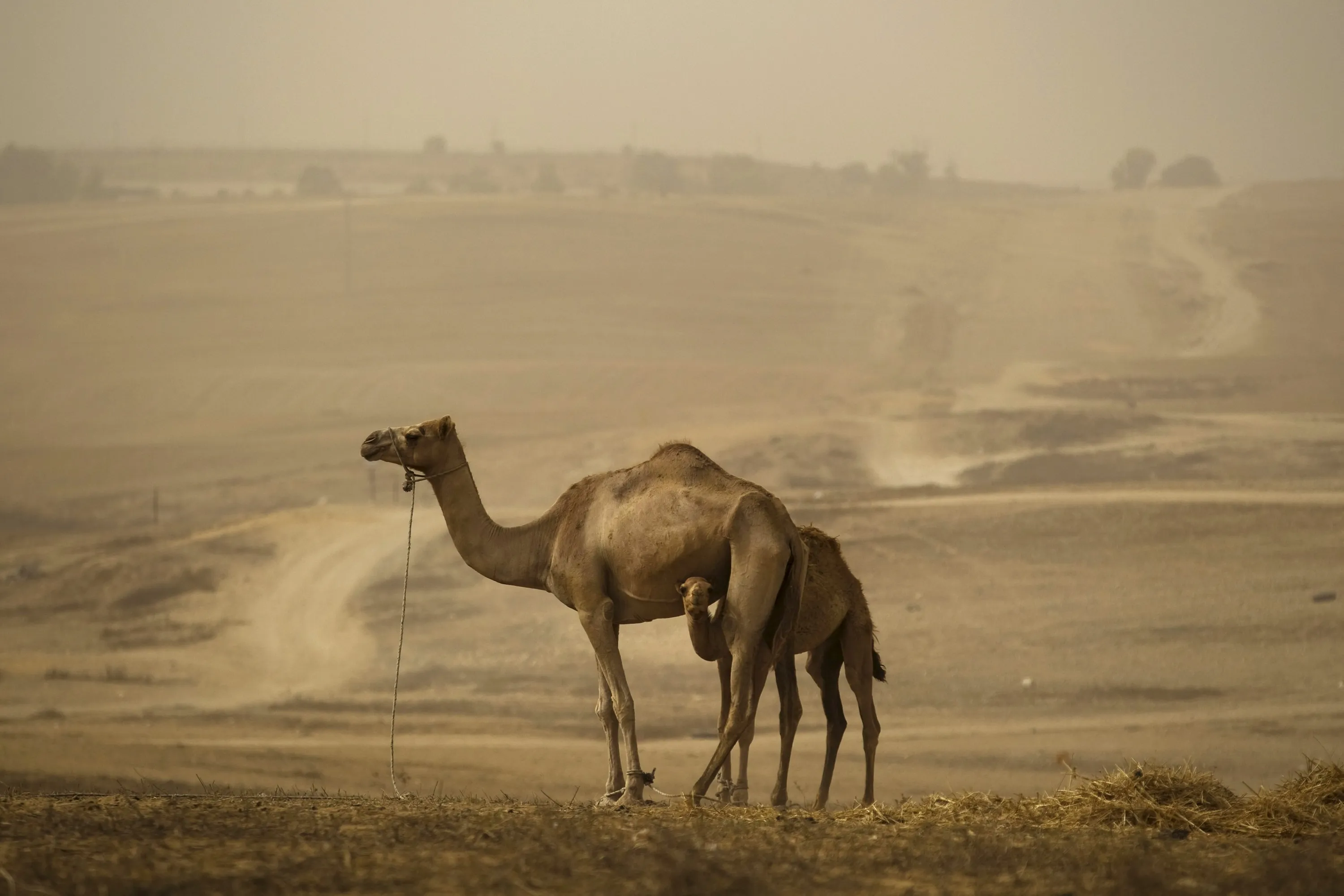 A camel and her calf stand in a field during a sandstorm near Rahat, southern Israel September 10, 2015. A heavy sandstorm, which swept across parts of the Middle East on Tuesday, could still be felt in Israel on Thursday. (Photo by Amir Cohen/Reuters)