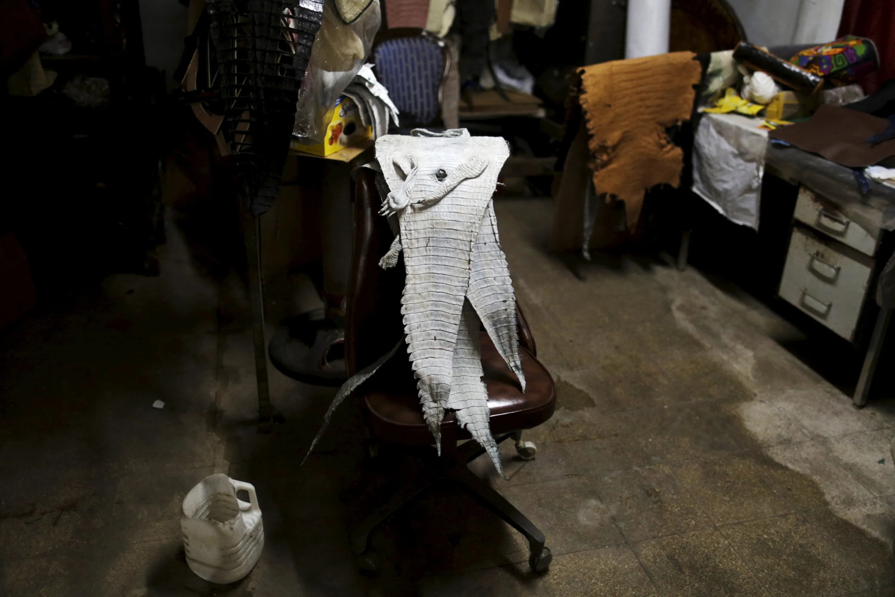 Crocodile skin waits to be used at a sewing workshop in Panagator, a sustainable crocodile farm, on the outskirts of Panama City September 11, 2015. (Photo by Carlos Jasso/Reuters)