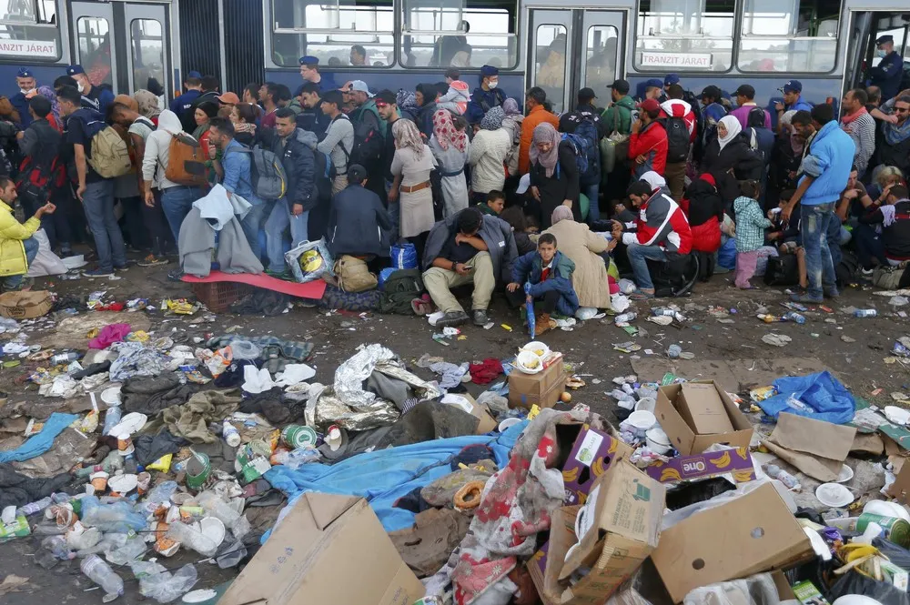 Migrants wait to board a bus at a migrant collection point in Roszke, Hungary September 12, 2015. (Photo by Laszlo Balogh/Reuters)