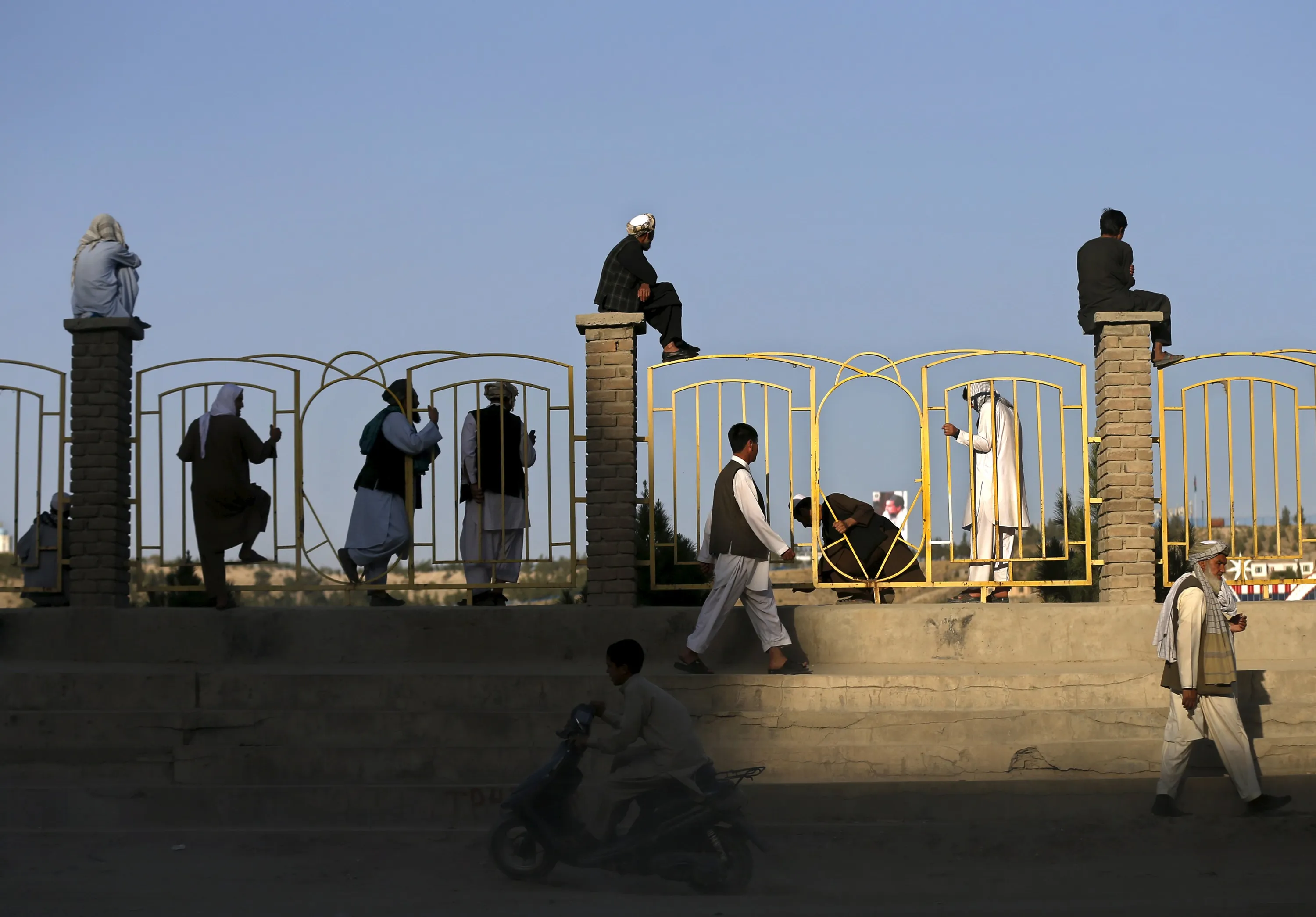 Afghan men sit on a wall as they watch others play football in Kabul, Afghanistan September 11, 2015. (Photo by Mohammad Ismail/Reuters)