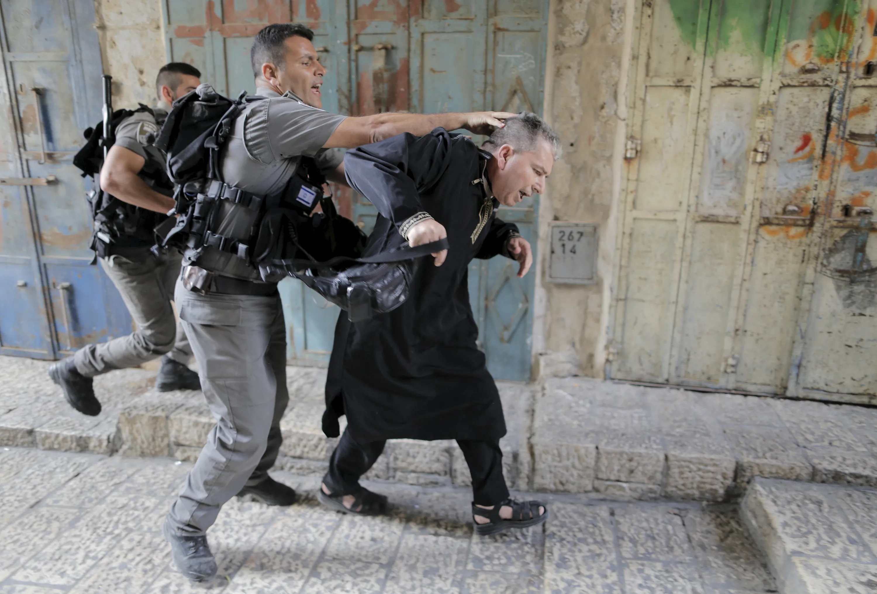 Israeli border police officers detain a Palestinian protester in Jerusalem's Old City,September 14, 2015. Israeli police raided the plaza outside Jerusalem's al-Aqsa mosque on Sunday in what they said was a bid to head off Palestinian attempts to disrupt visits by Jews and foreign tourists on the eve of the Jewish New Year. (Photo by Ammar Awad/Reuters)