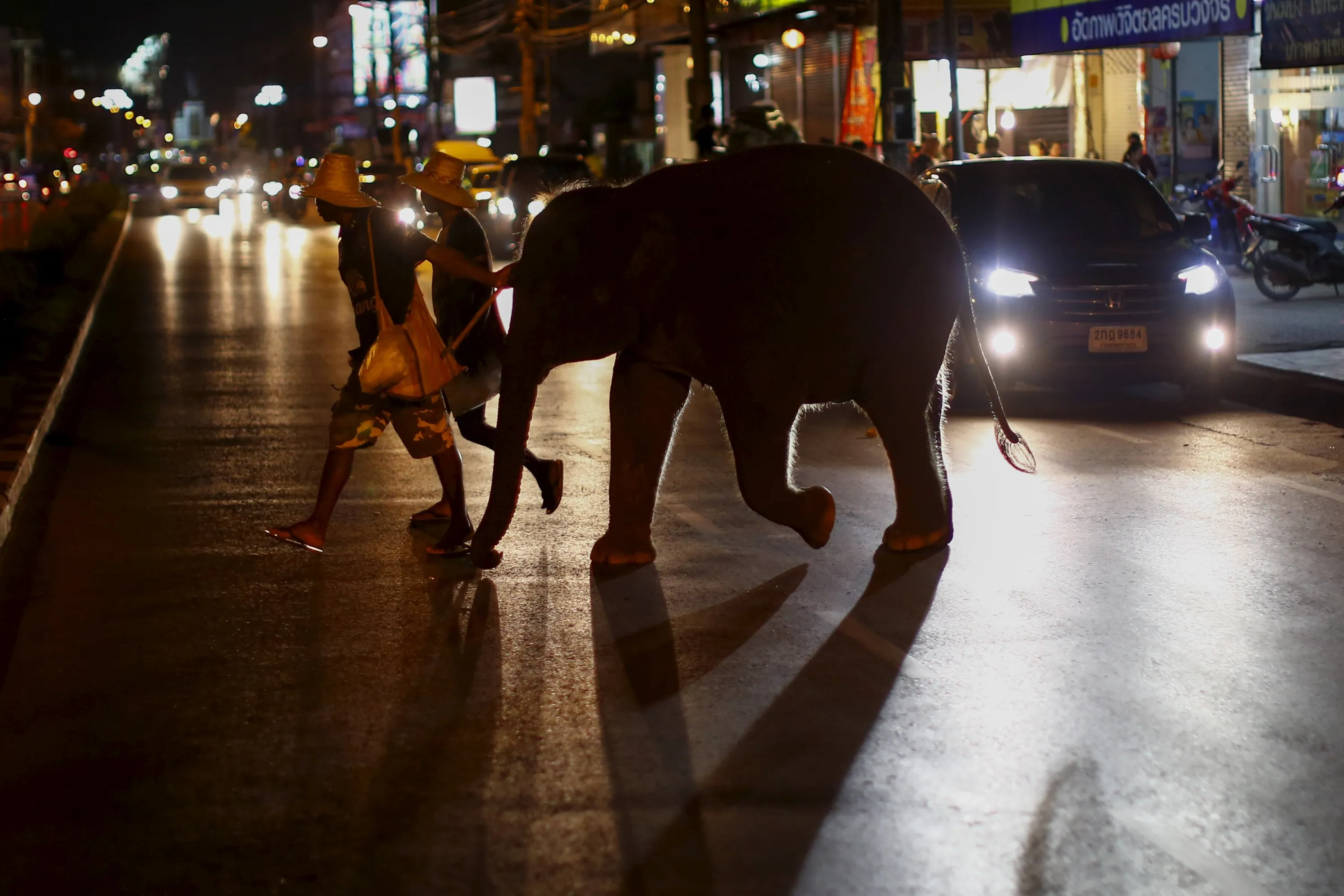 A baby elephant follows its mahout across a street in Udon Thani, Thailand September 15, 2015. (Photo by Jorge Silva/Reuters)