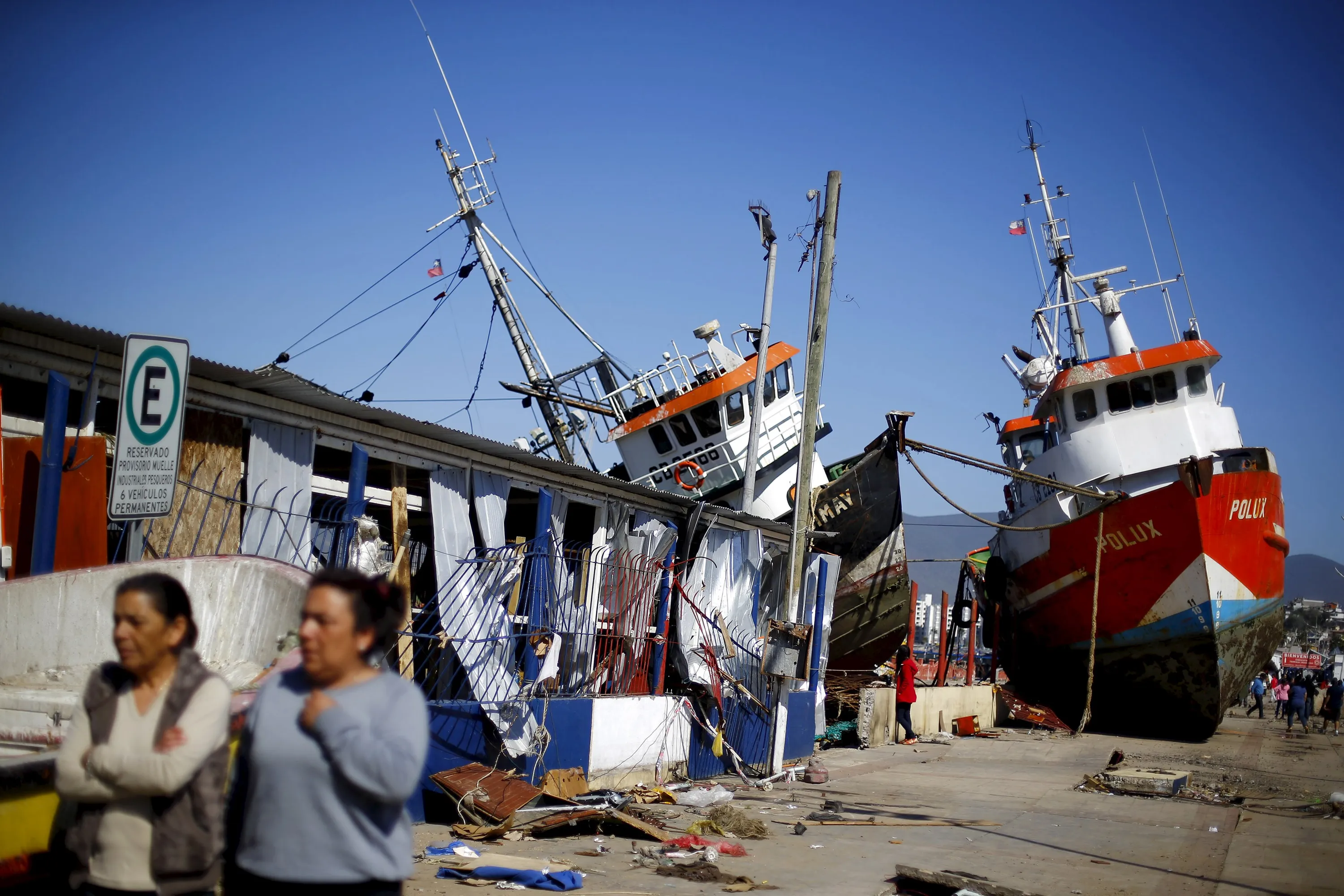 Ships are seen on the street after an earthquake hit areas of central Chile, in Coquimbo city, north of Santiago, Chile, September 17, 2015. (Photo by Ivan Alvarado/Reuters)
