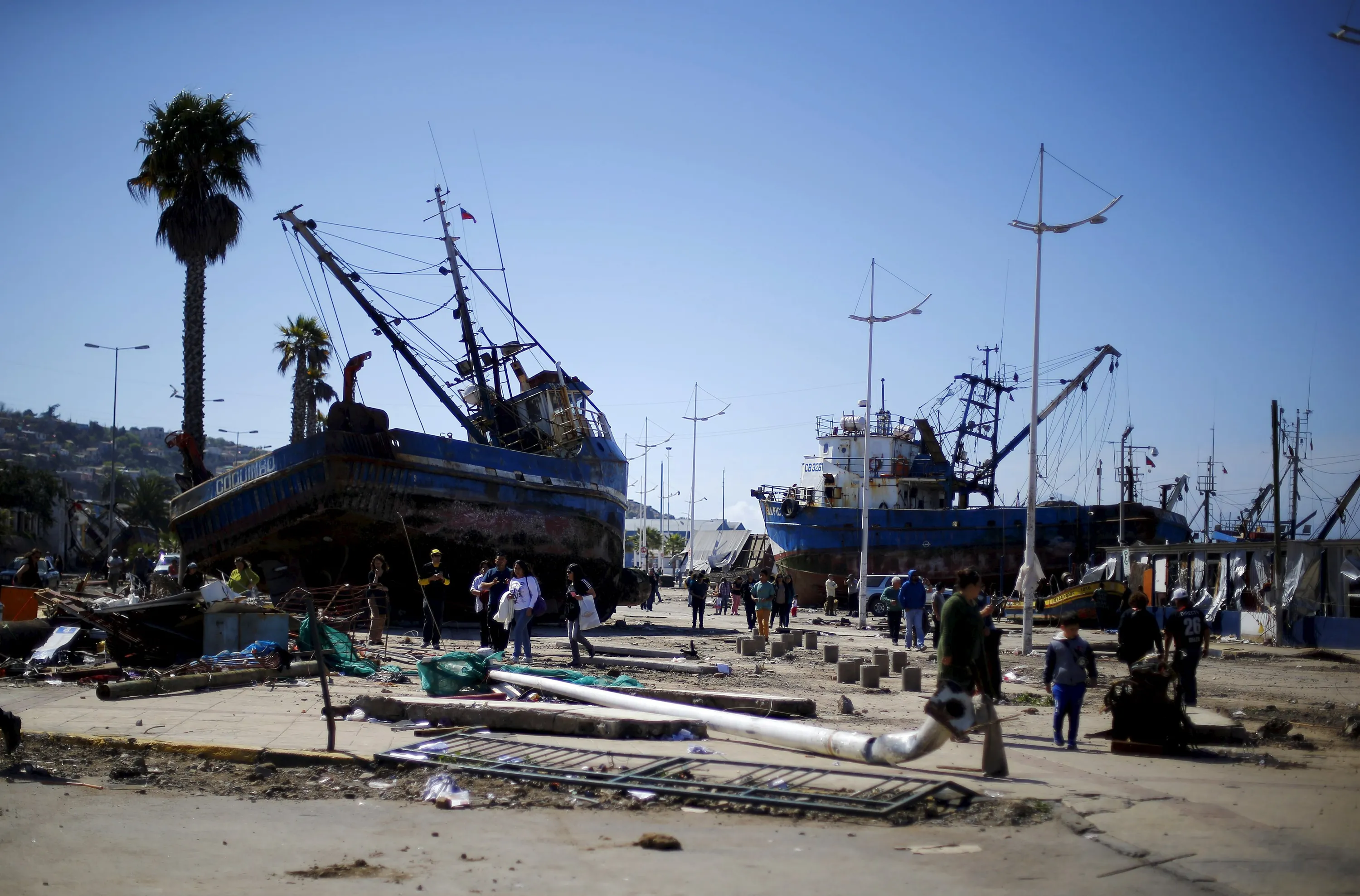 Ships are seen on the street after an earthquake hit areas of central Chile, in Coquimbo city, north of Santiago, Chile, September 17, 2015. Residents sifted through rubble on Thursday and saved what they could from homes destroyed by a magnitude 8.3 earthquake in central Chile that killed 11 people, forced 1 million from their homes and sent giant waves crashing into coastal areas. (Photo by Ivan Alvarado/Reuters)