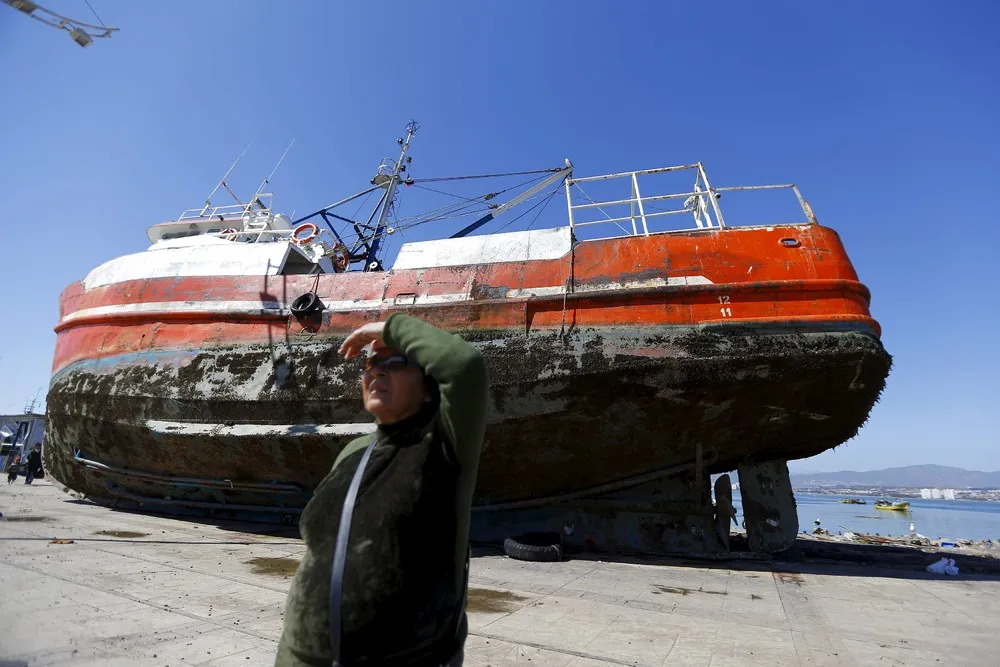 A ship is seen in the street after an earthquake hit areas of central Chile, in Coquimbo city, north of Santiago, Chile, September 17, 2015. (Photo by Ivan Alvarado/Reuters)