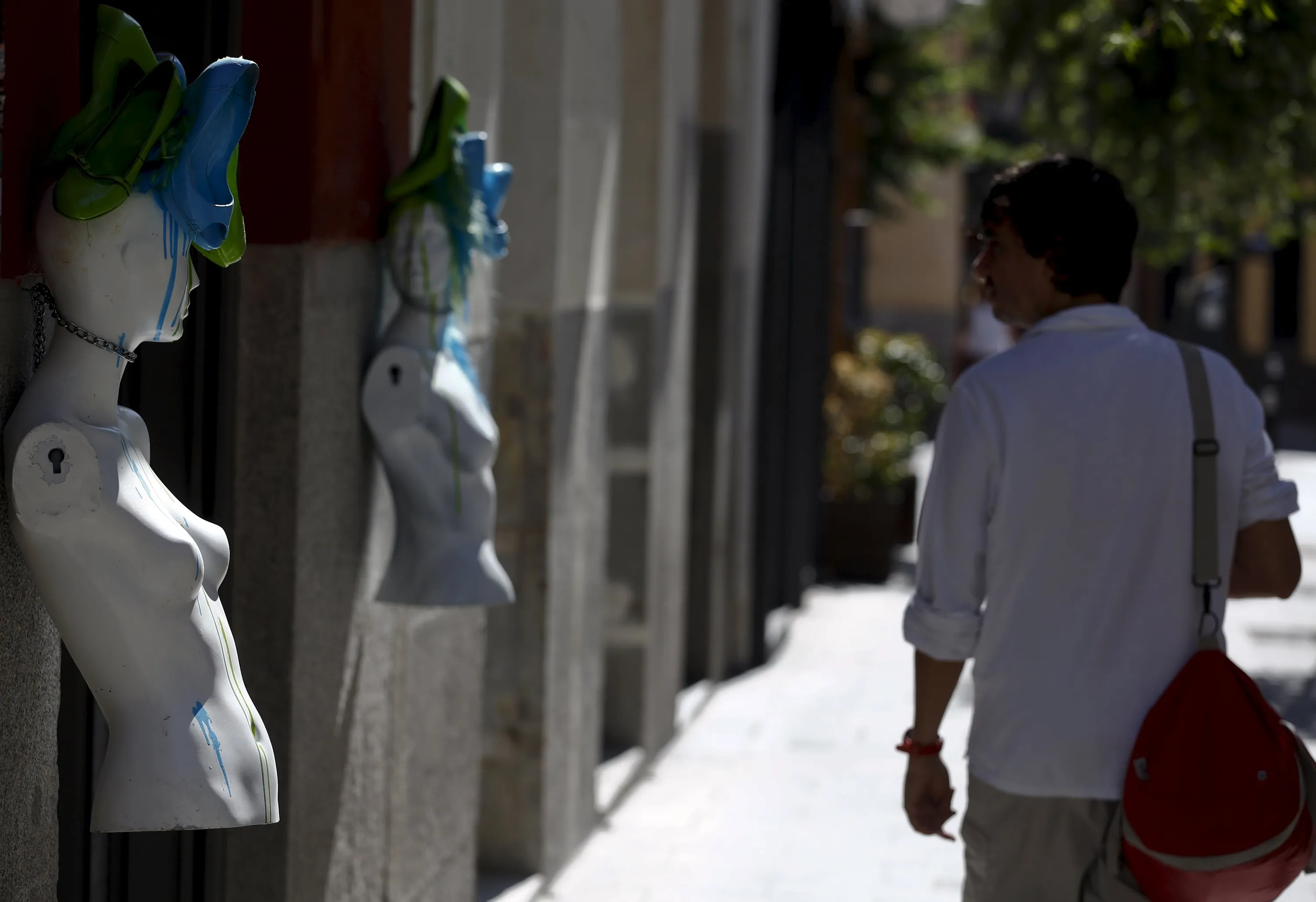 Mannequins hang outside a salon in central Madrid, Spain, August 26, 2015. (Photo by Sergio Perez/Reuters)
