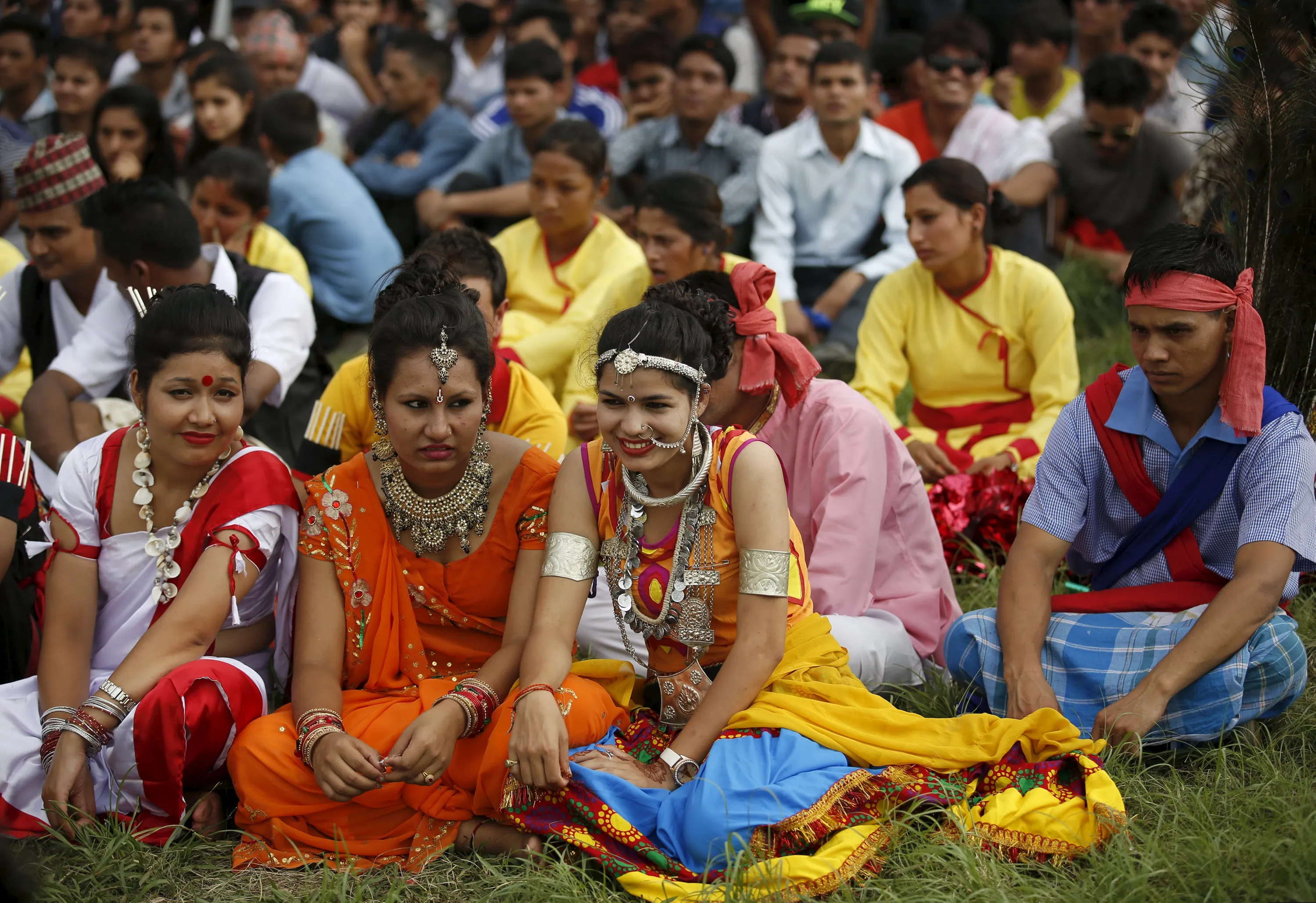 Performers dressed in traditional attire gathers during a celebration a day after the first democratic constitution was announced in Kathmandu, Nepal September 21, 2015. (Photo by Navesh Chitrakar/Reuters)