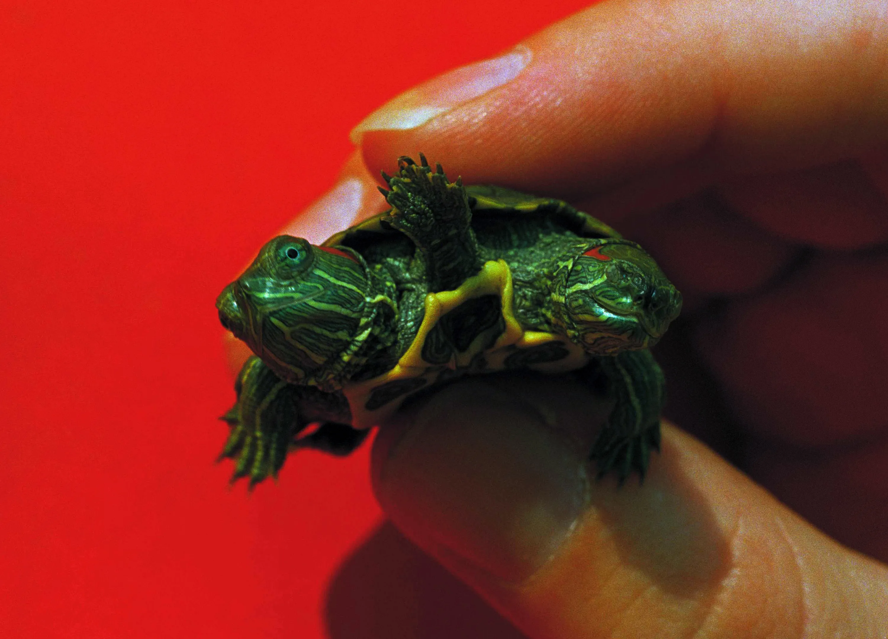 A turtle born with two heads and an extra set of legs between them is held by an employee of a Jenkintown, Pa., pet store on September 22, 1986. The owner of the store said while it was the strangest thing he�d ever seen he had no idea how long it would live. (Photo by Rusty Kennedy/AP Photo)